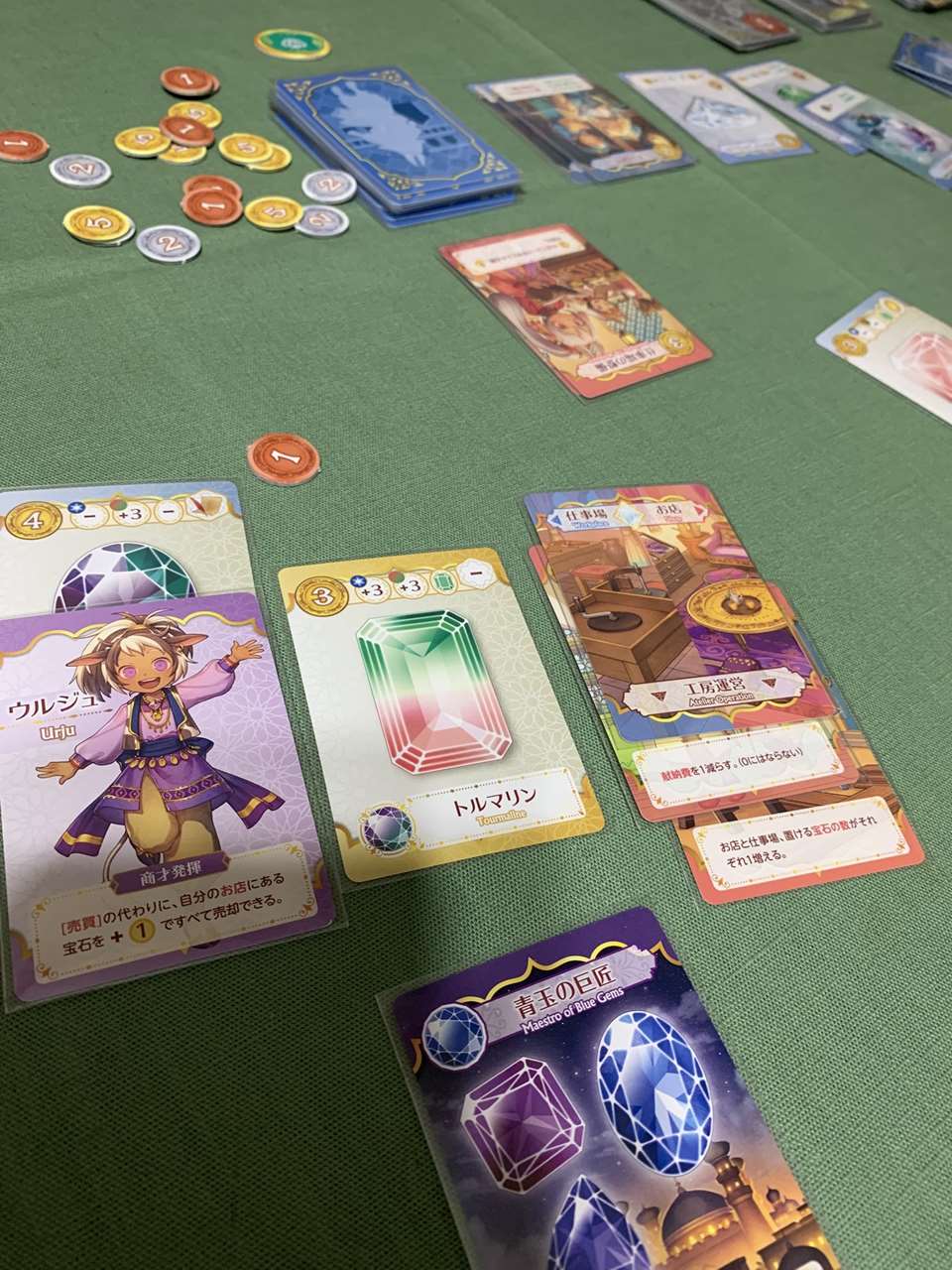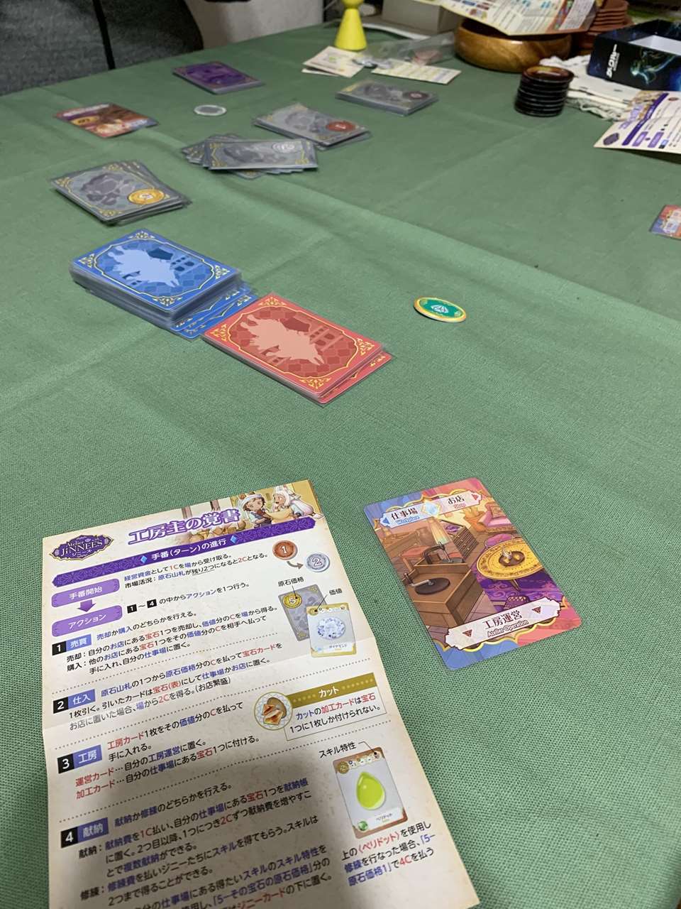 「宝石の煌き」のような拡大再生産でリソースをこねこねして大きく2系統のやりたいことがあってとちょっと記憶が曖昧です。深夜0時を過ぎてからルール説明始めたのでこんなもんですが、おぼろげに楽しかった印象が残っています。もう一度遊ばなくては(笑)