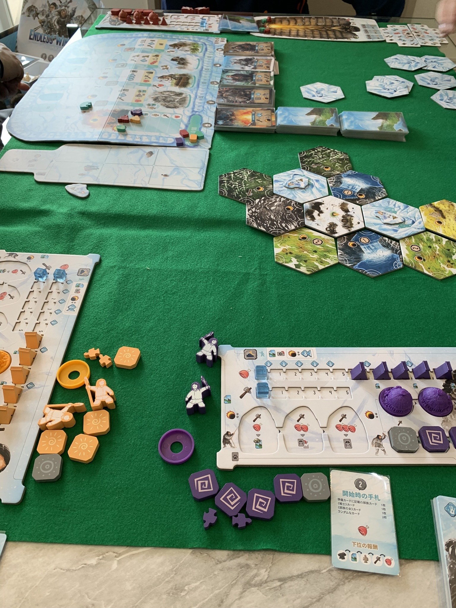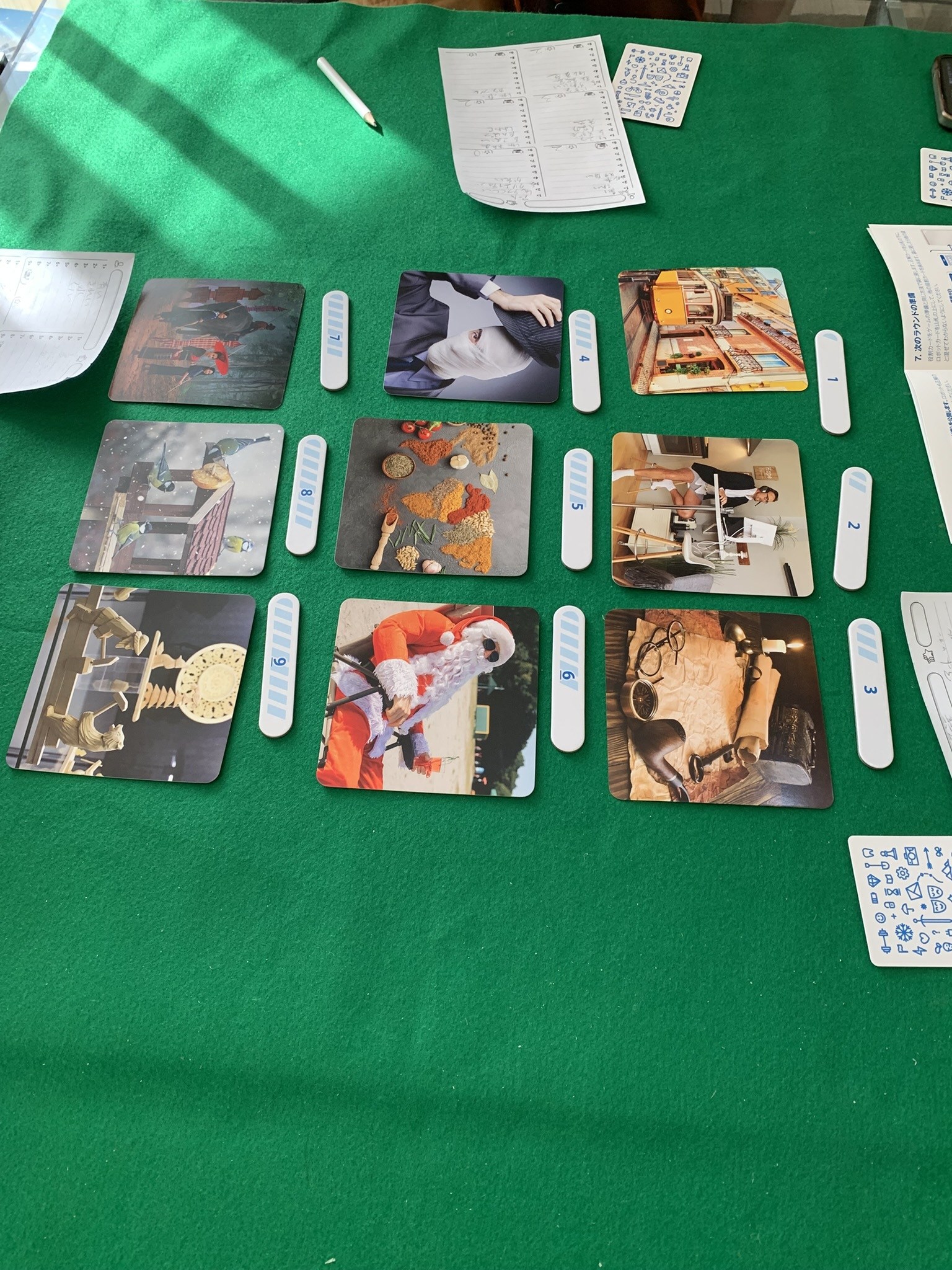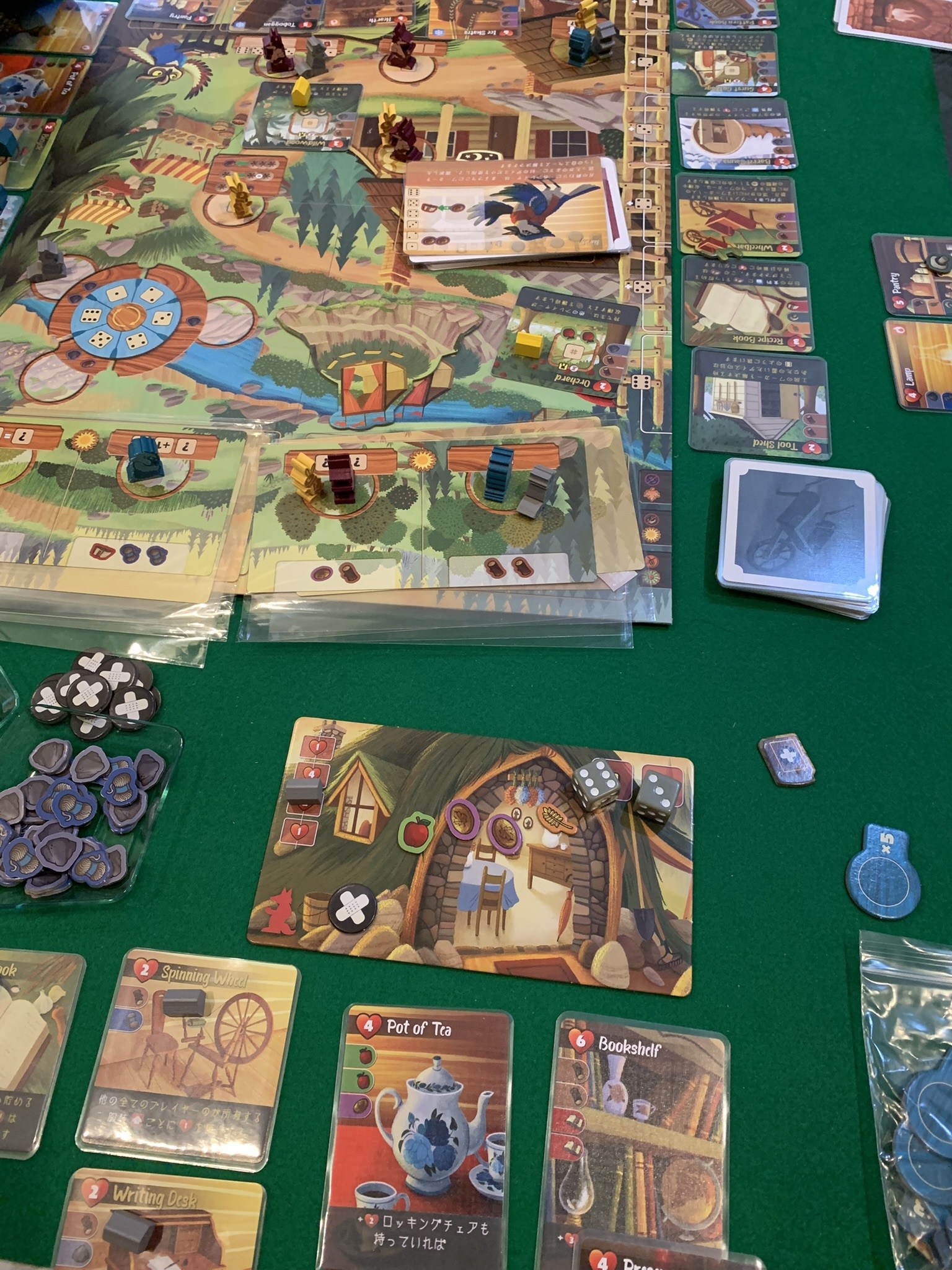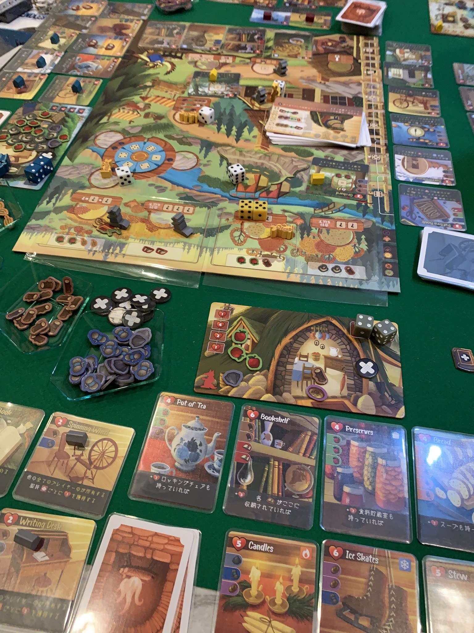 最近よく持ち歩いているサイコロを使ったワーカープレイスゲーム。食料供給などの支払いがないので遊んでて気持ち良いんですよね。勝者は先生、お見事でした。