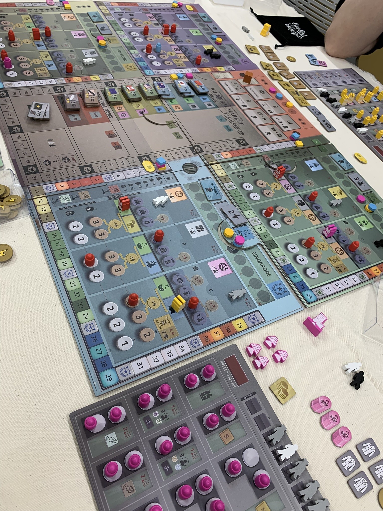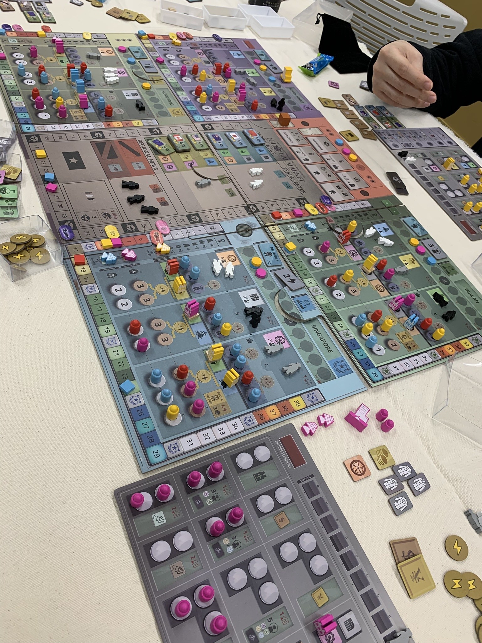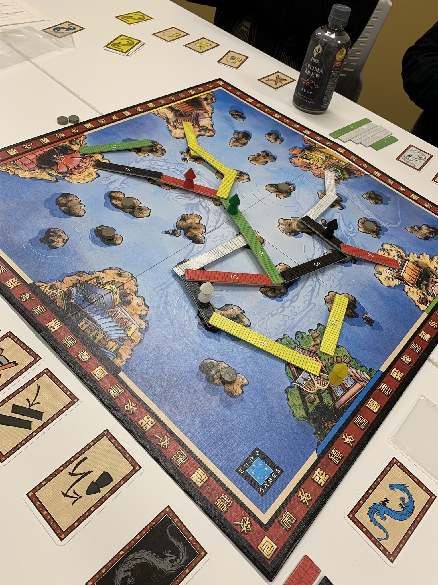 アジア圏での経済ゲーム。どの市場に特化してさらにもう一枠の市場もがんばりたいというバリアブルフェーズオーダー&ワーカープレイス。最近の重ゲーなので楽しいに決まってます。勝者はのりしおさん、お見事でした。