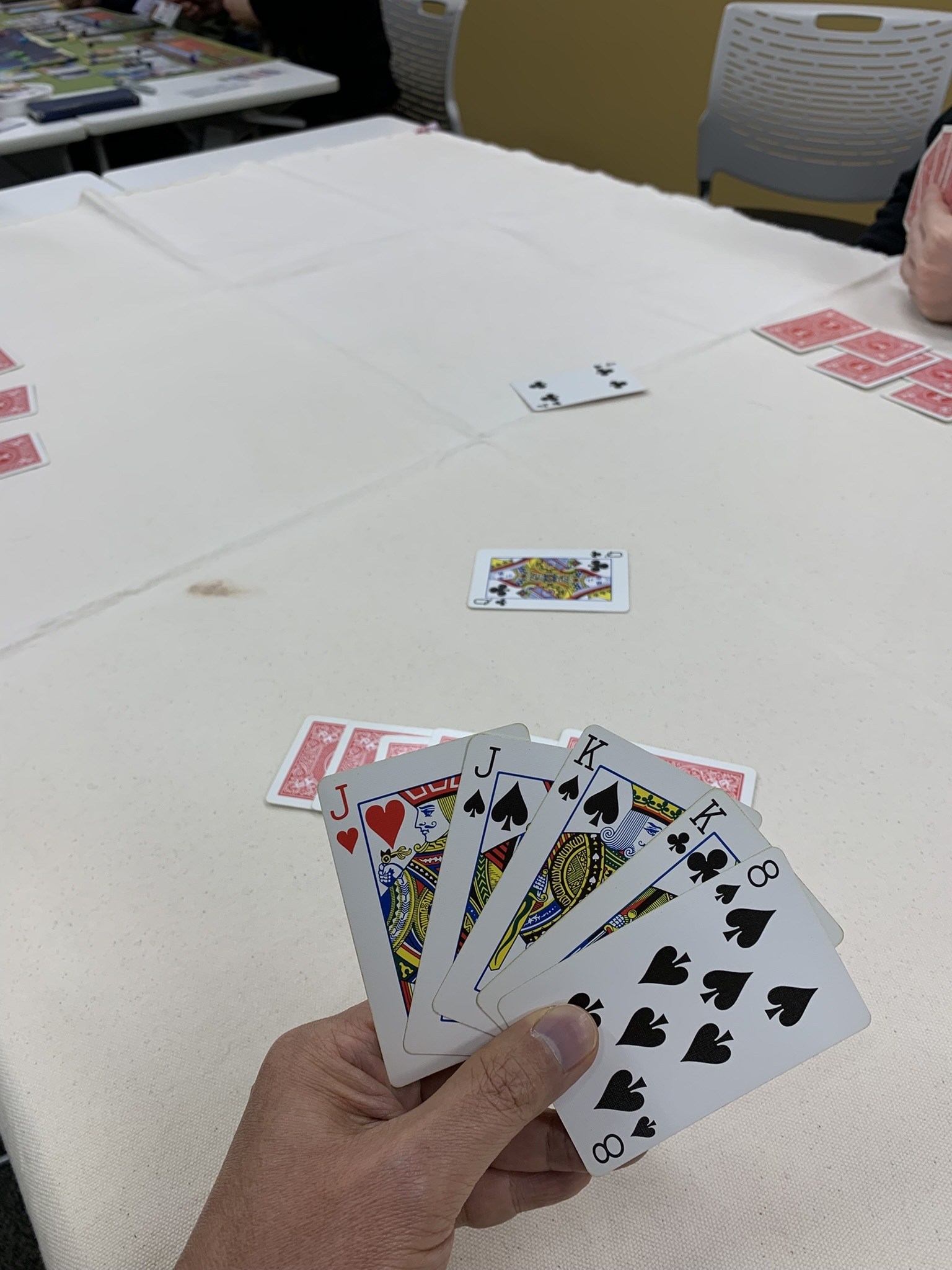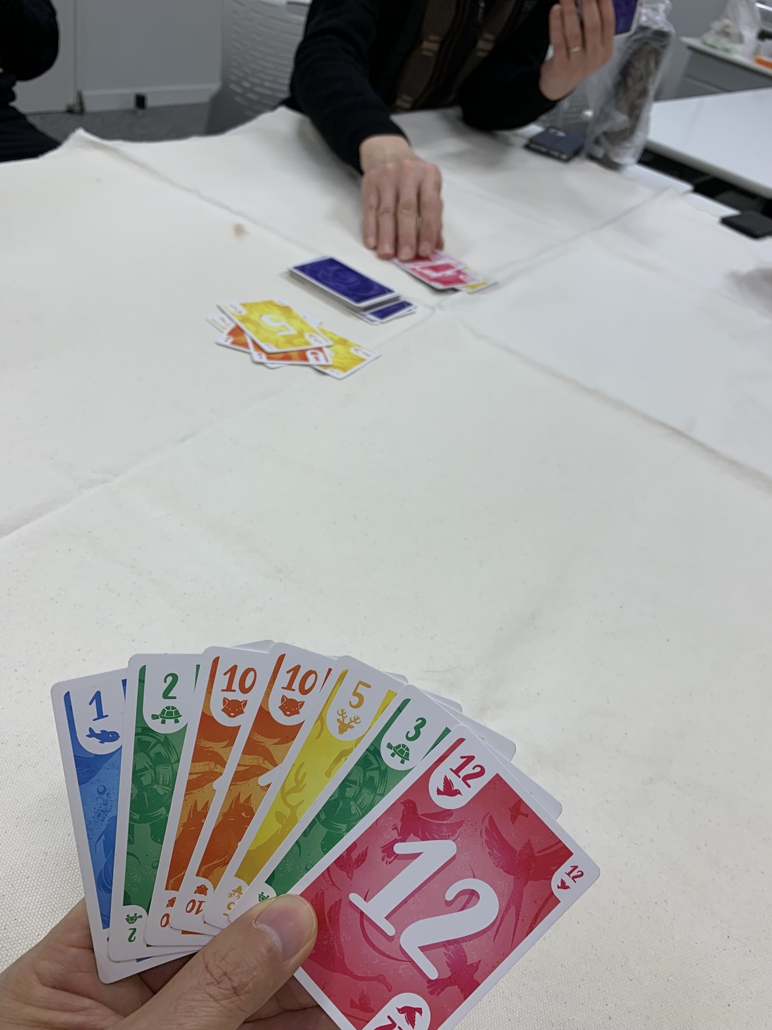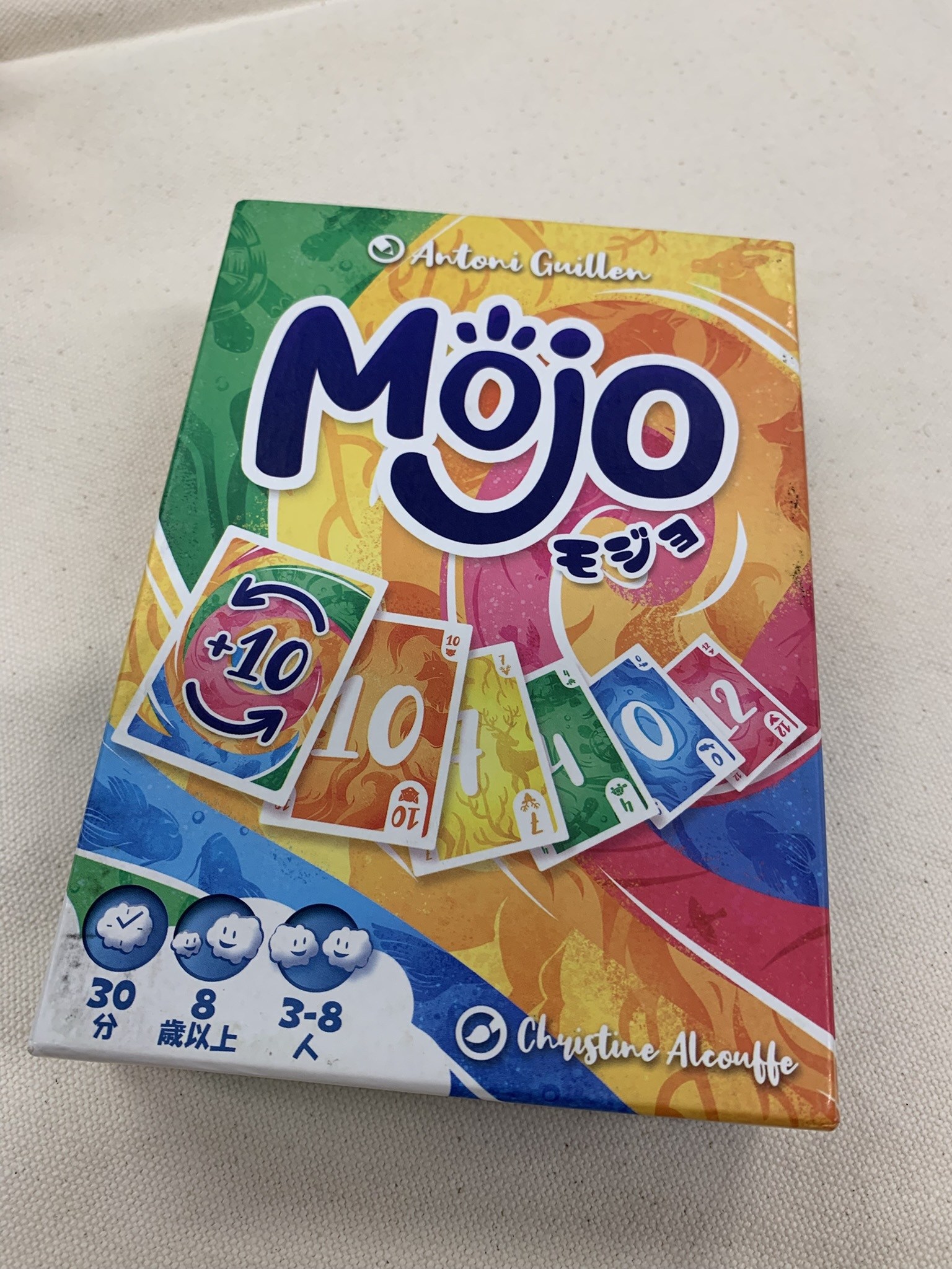 まずは開幕にトランプで遊ぶ「ヤニブ」をベースにアレンジしたと思う「モジョ」を遊びました。思いがけずモジョタイムに突入してしまうところが面白いですね。1つ持っておきたいカードゲームです。
