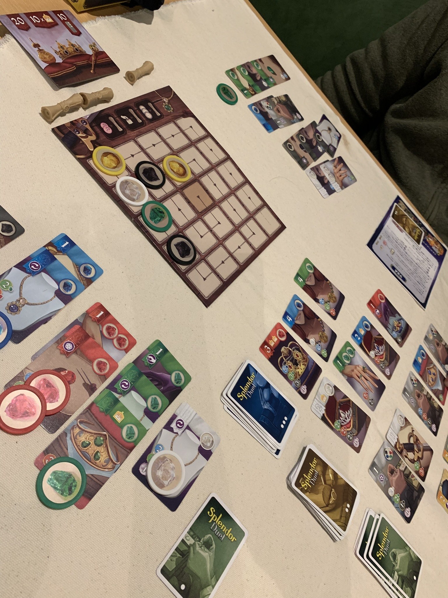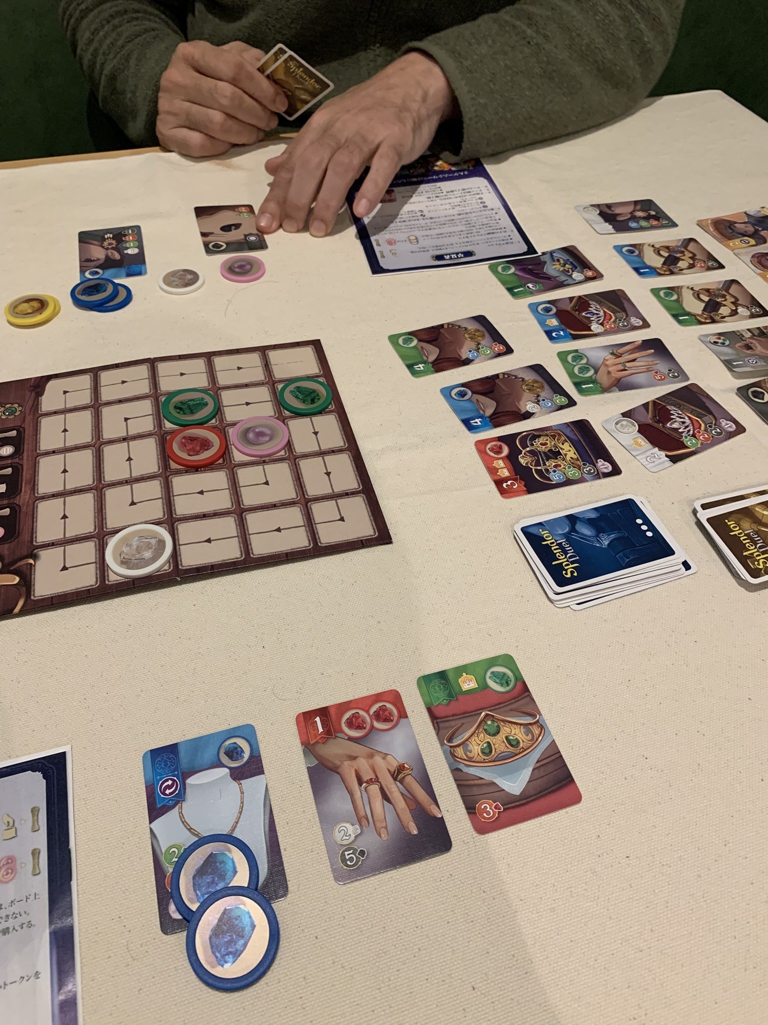 最後は一度遊んでみたかった宝石の煌き:デュエル! なるほど、勝ち方が3通りあって宝石トークンの取り方にもクセがありますね。基本セットになかった真珠トークンが勝敗のキモかもしれません(笑)