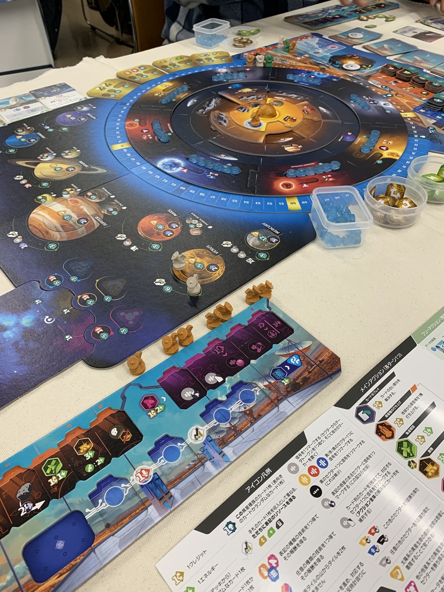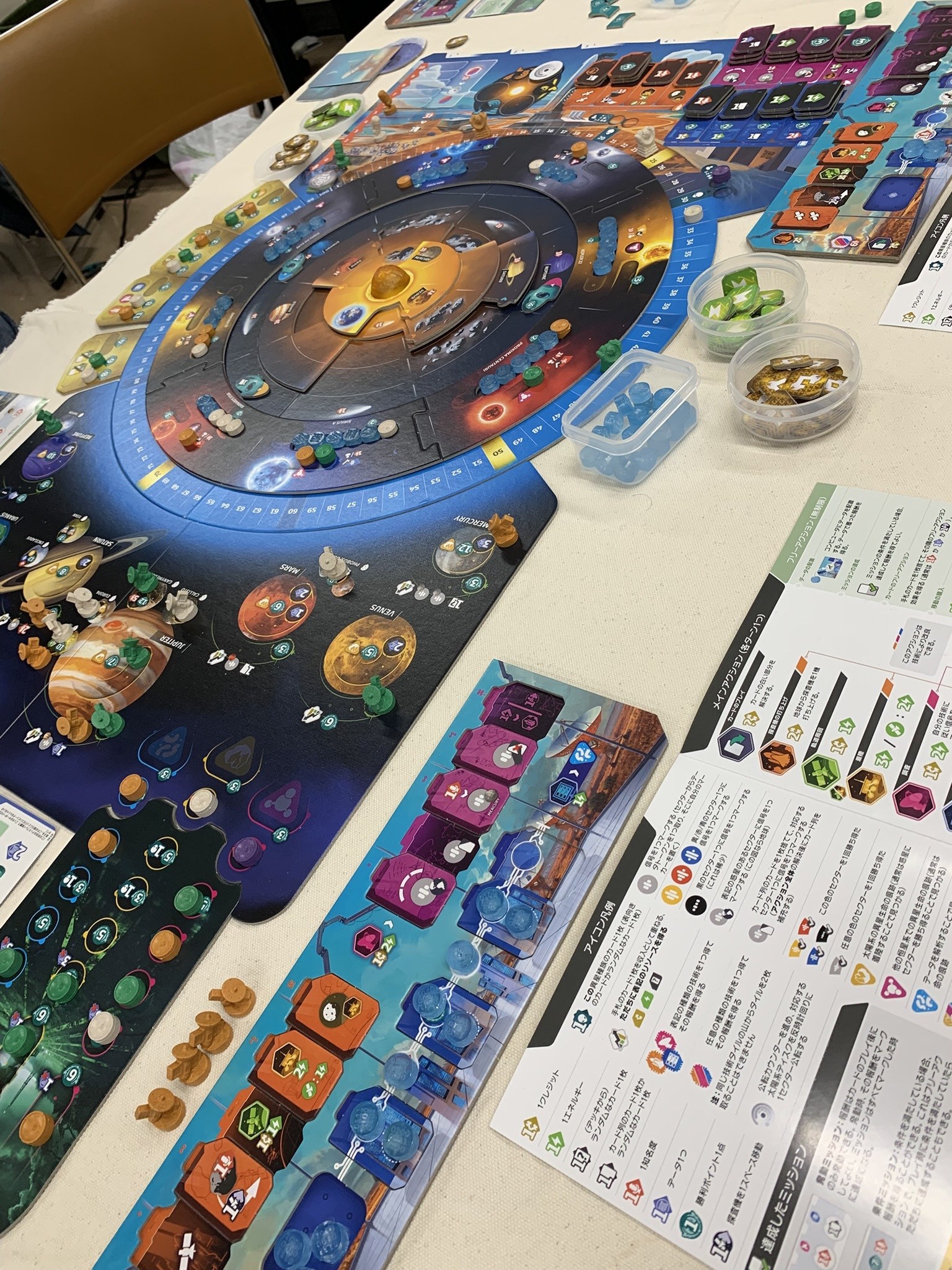TLでも会場でも話題沸騰中のゲームをやっと遊べました。同じ会場内で複数の卓が立っていることも珍しくなく、今日もこの卓を含め複数回遊ばれていました。宇宙探査はロマンがあって良いですね! 勝者は S◎~YA さん、お見事でした。