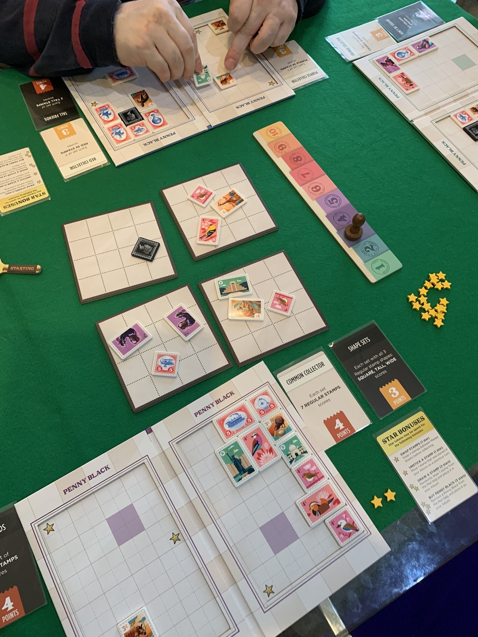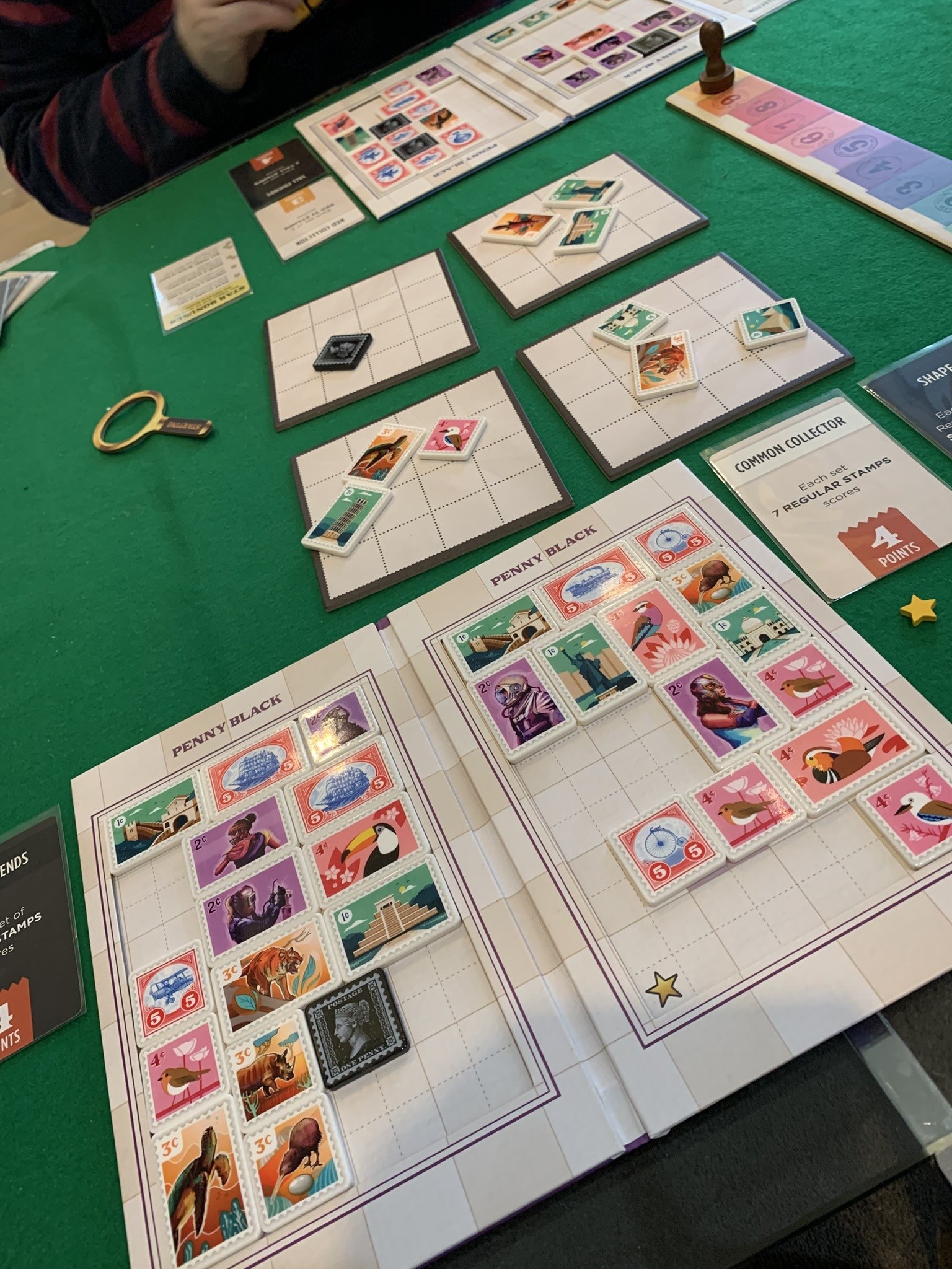 切手収集がテーマのセットコレクションメインゲーム。特筆すべきは切手を集めるエリアが2つに分かれているところですね。いつもながら先生の素晴らしいレビューがボドゲーマさんにありますのでリンクを貼っておきます。勝者は先生、お見事でした。