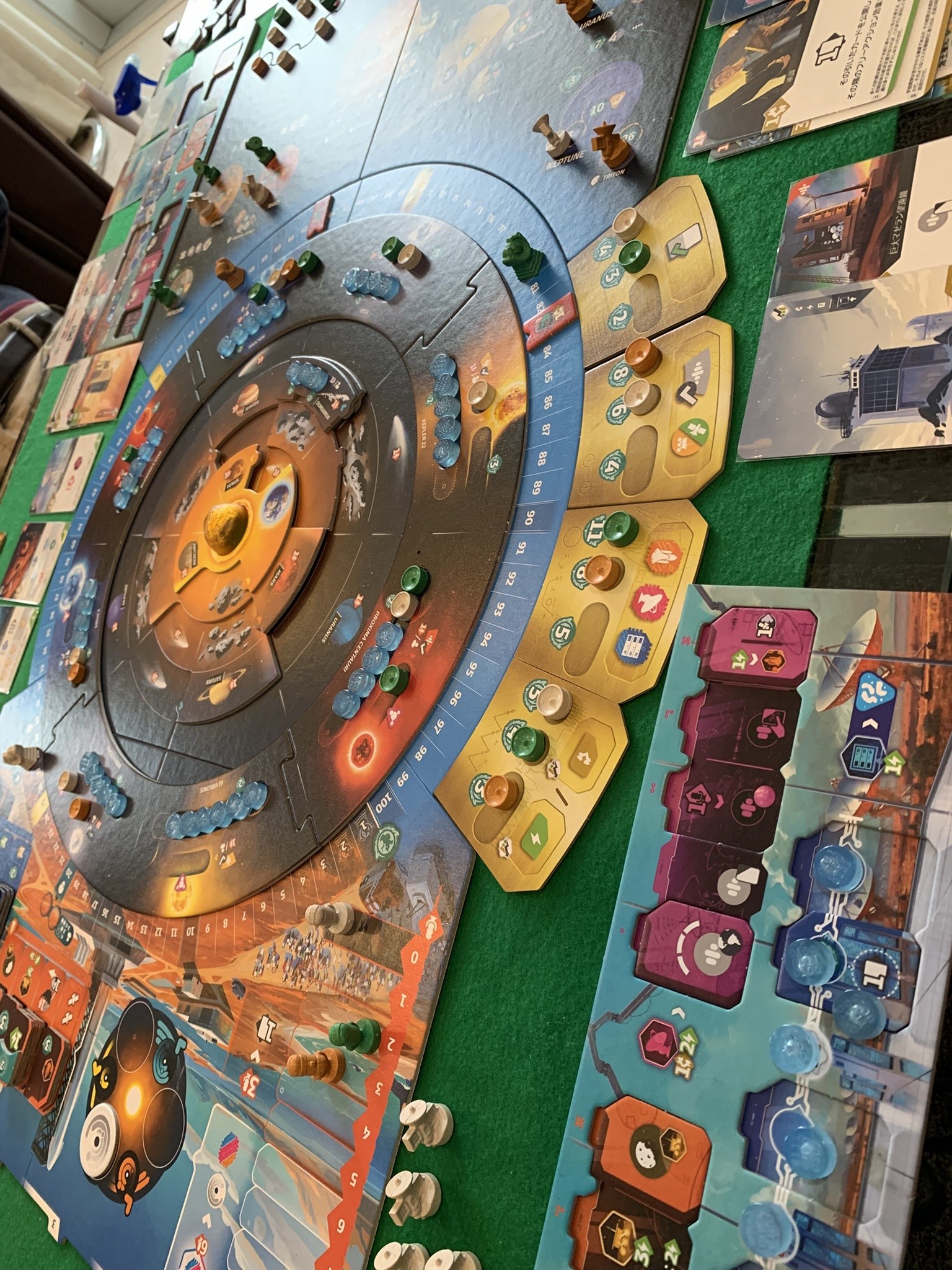 到着してまずは最近流行っているセティから。惑星のマジョリティがあまりに埋まらなさすぎるというので先生のアレンジを加えて遊んだので惑星の決算が何度も発生して楽しかったです。アナログゲームならではの楽しみ方ですね。先生のレビューも貼っておきます。
