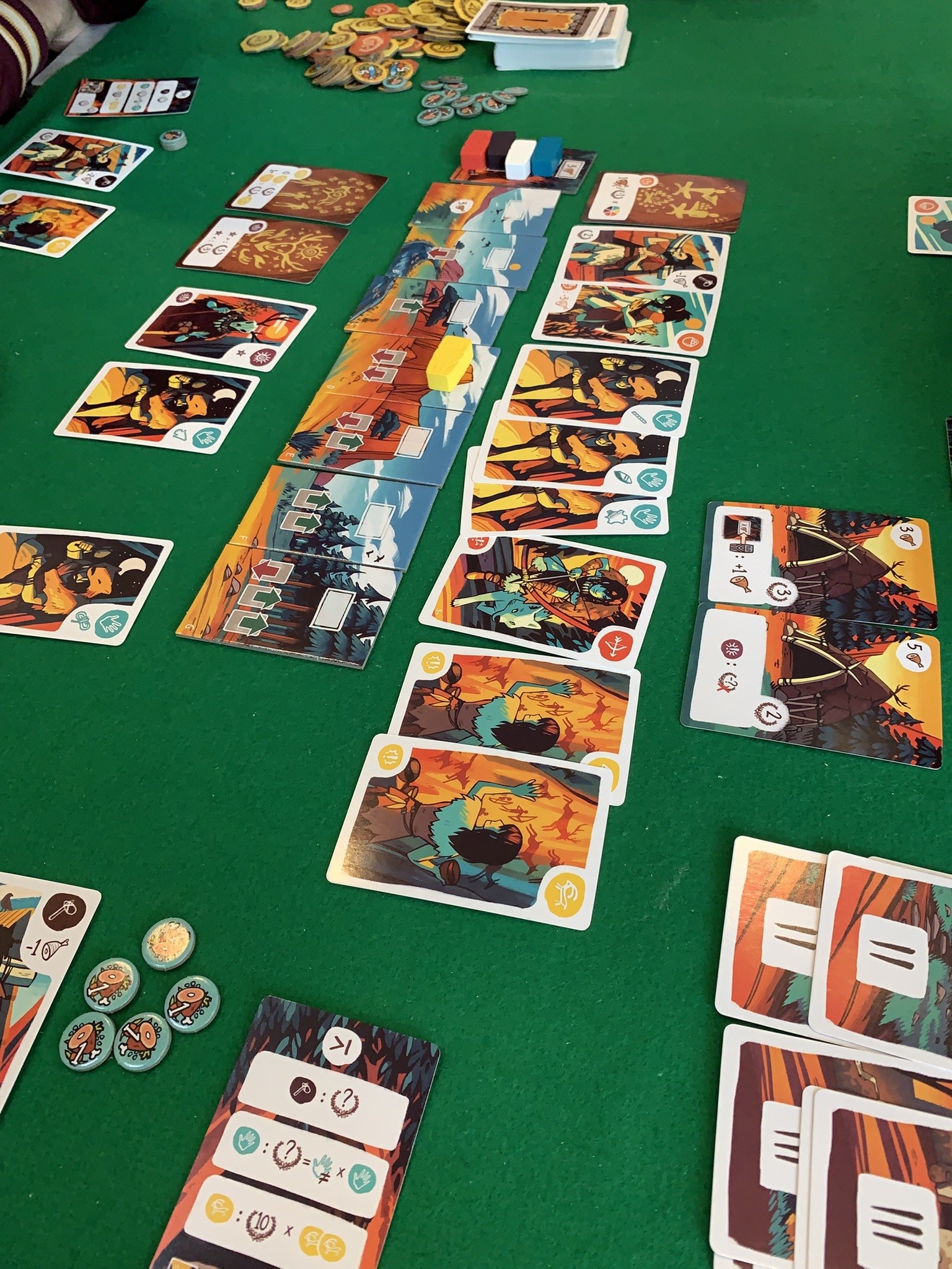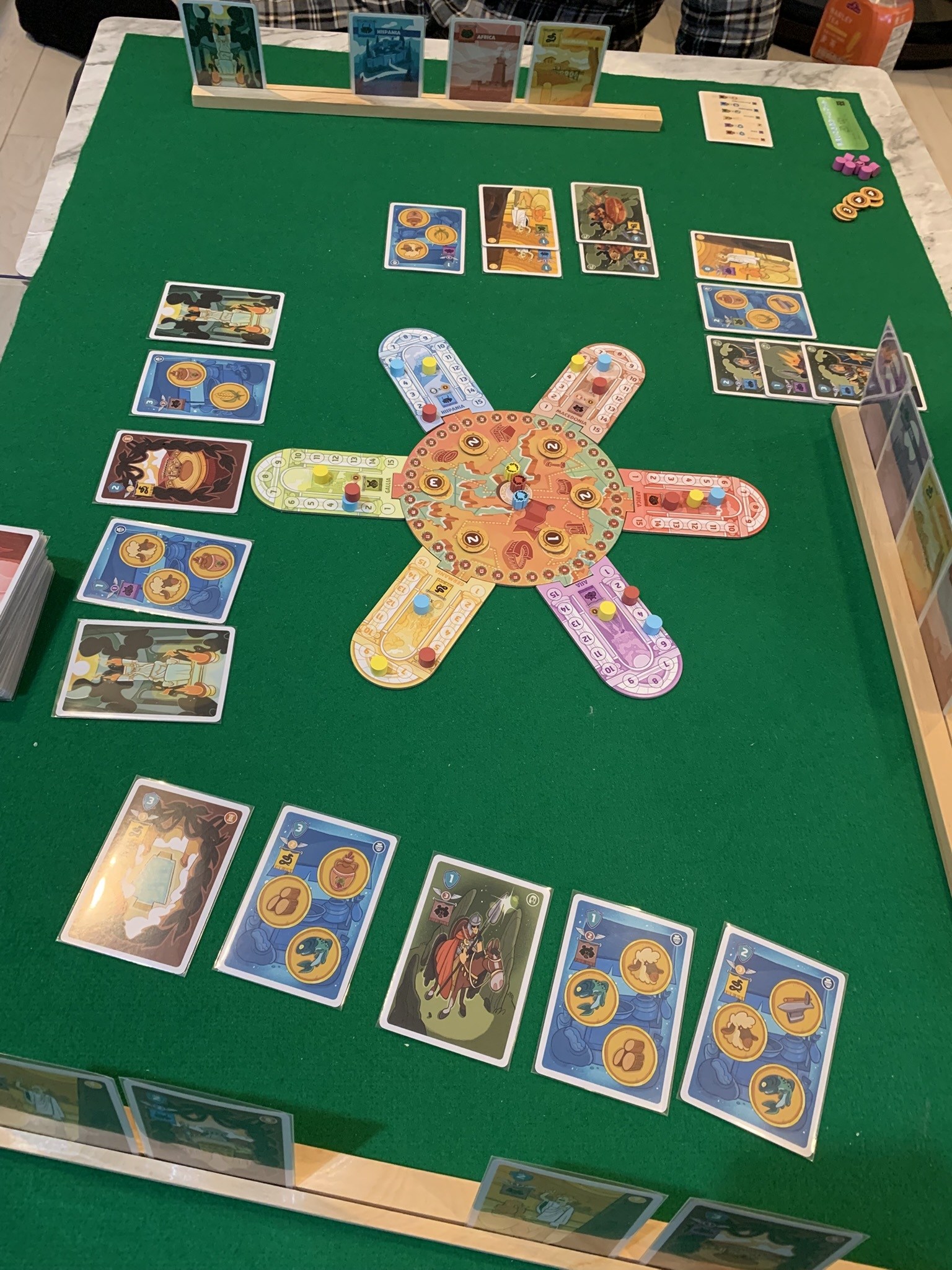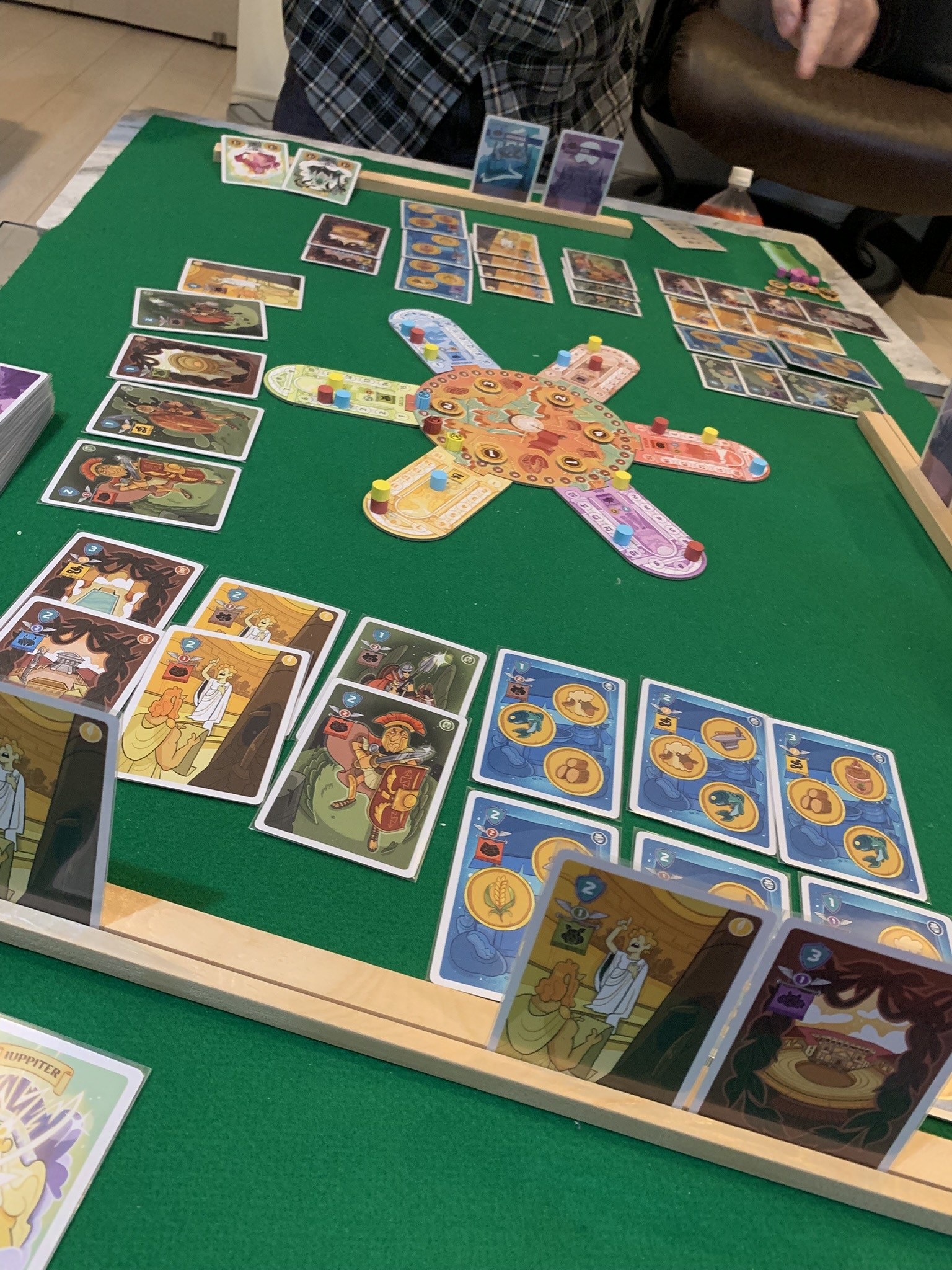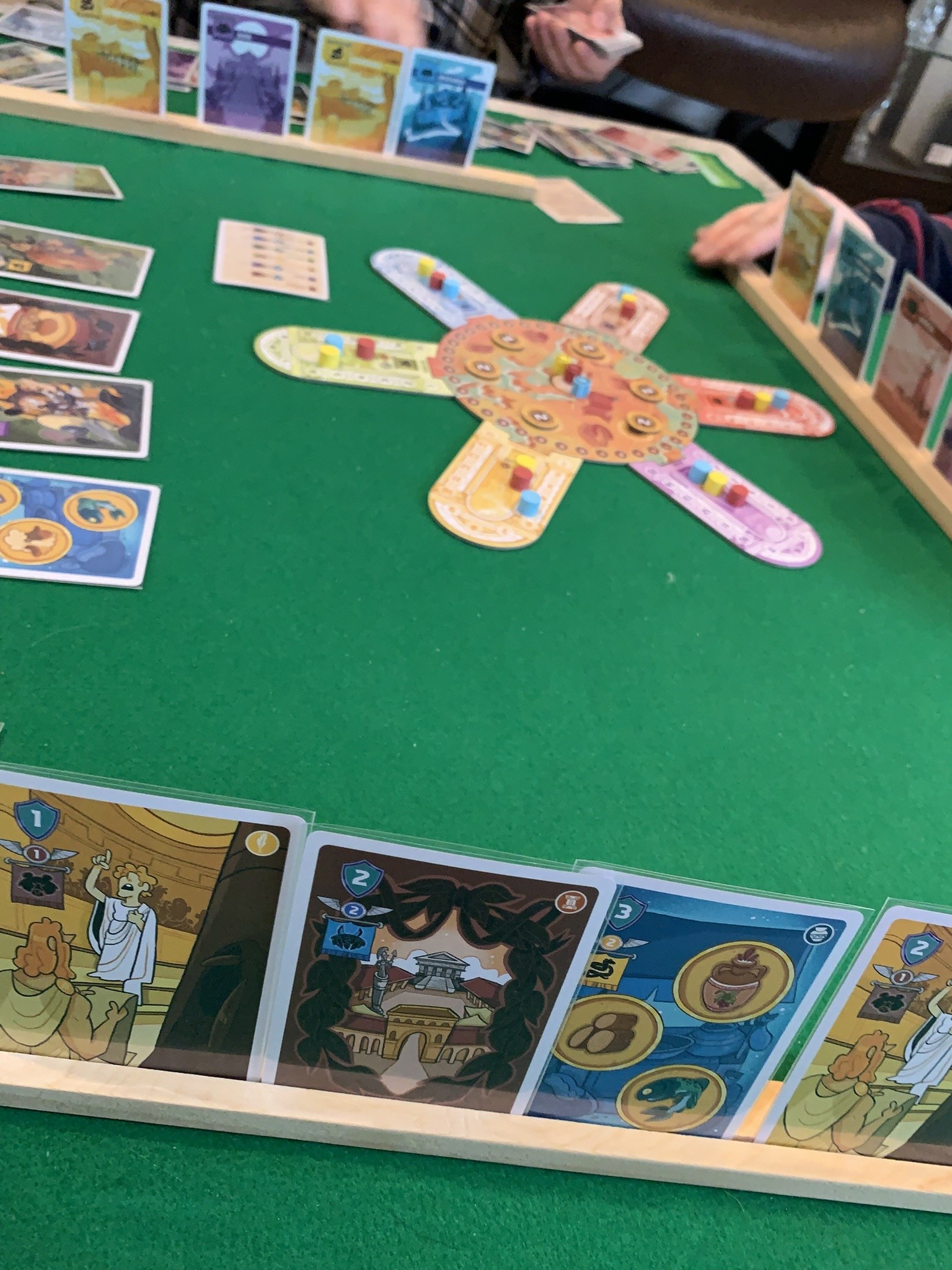 オープンドラフトでカードを取って拡大再生産?していきます。今流行りの言葉で言うとタブロービルド。カードを取るときのコストが無しなのでプレイ感がとても軽く、カードの取捨選択と順番のみに注力できるのでサクサク進みますね。勝者はワーカーマンさん、お見事でした。