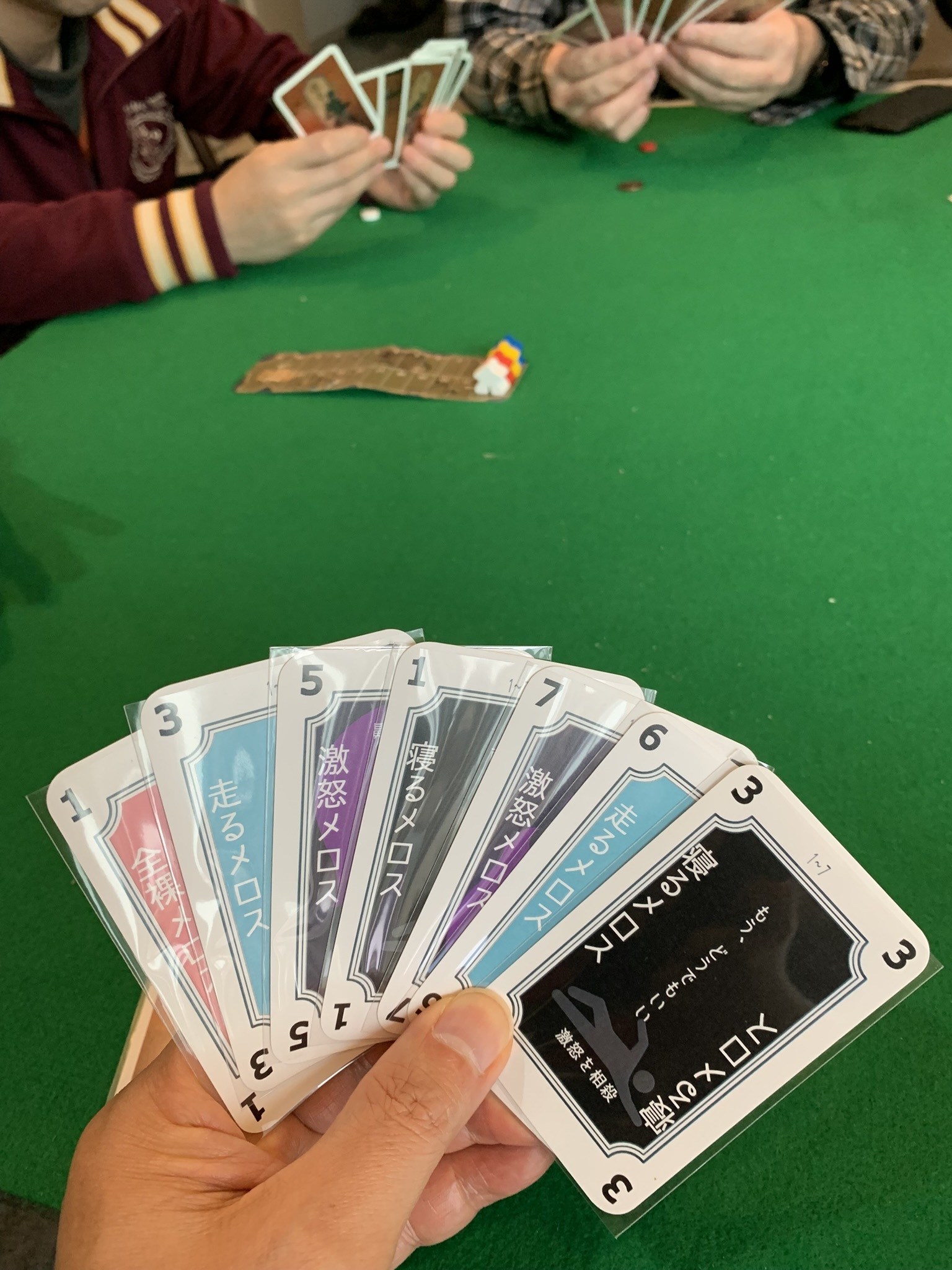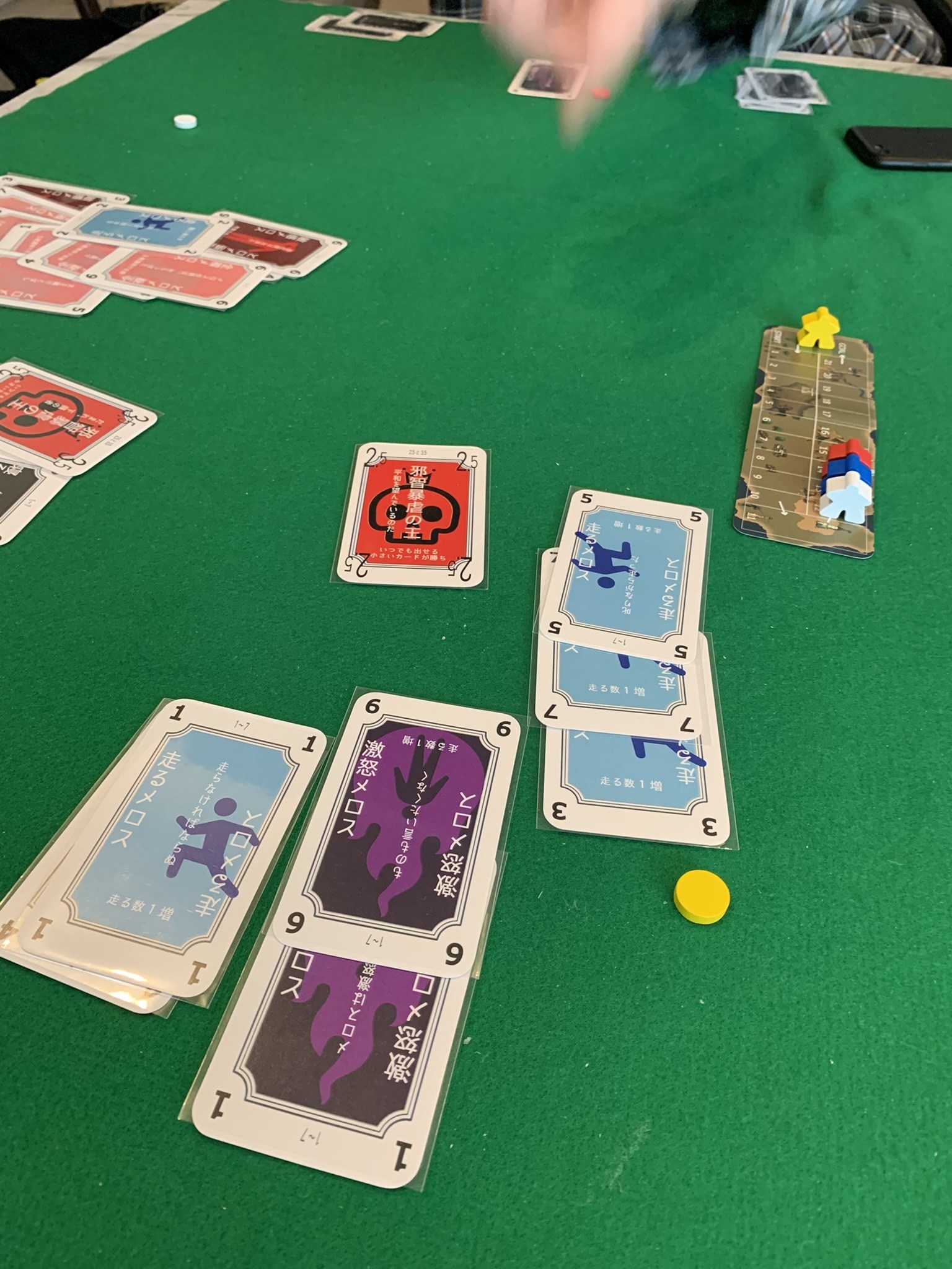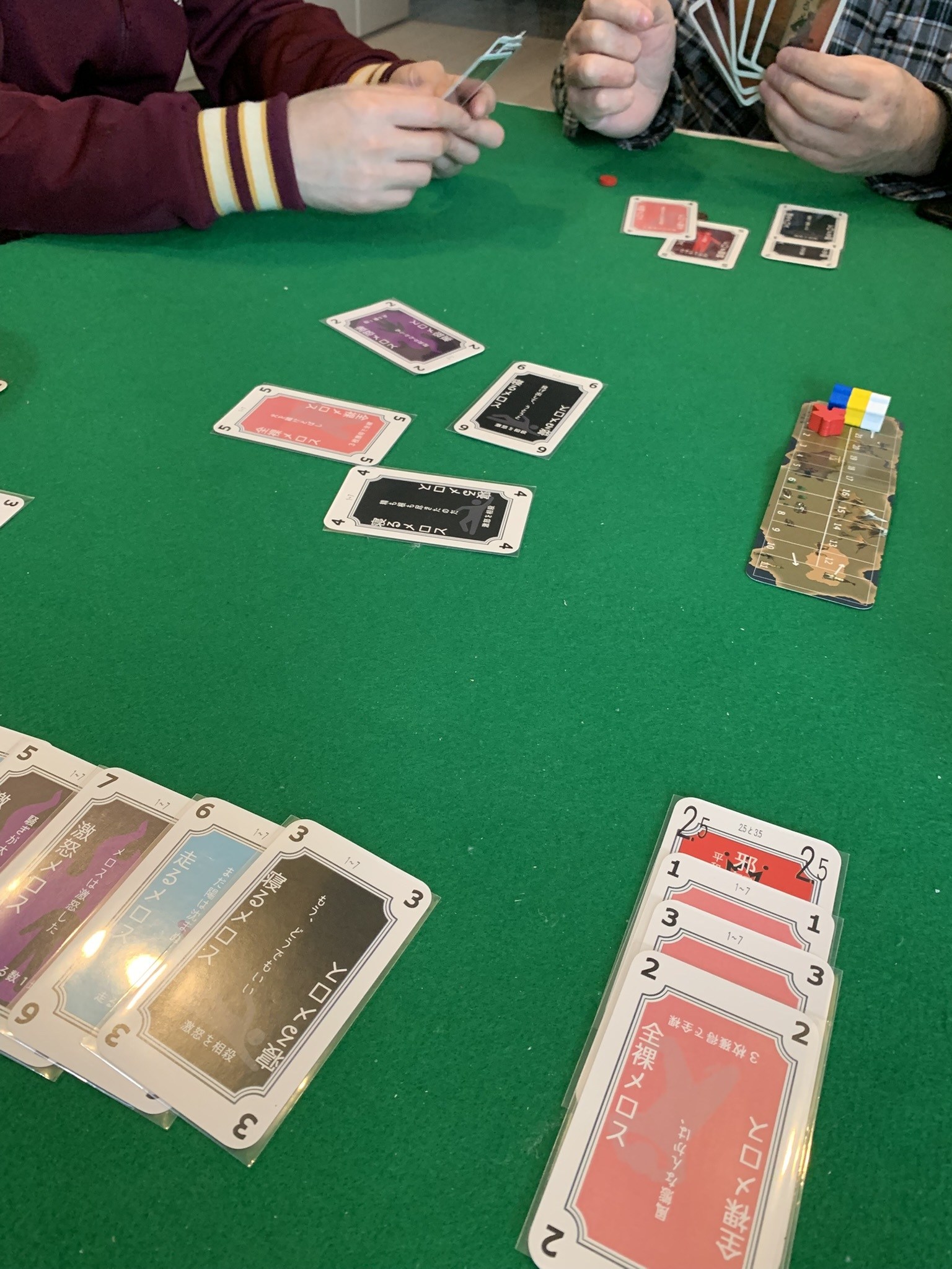 お次は日本文学をテーマにしたトリックテイクを遊びました。トリックをエンジンとしたレースゲームですね。