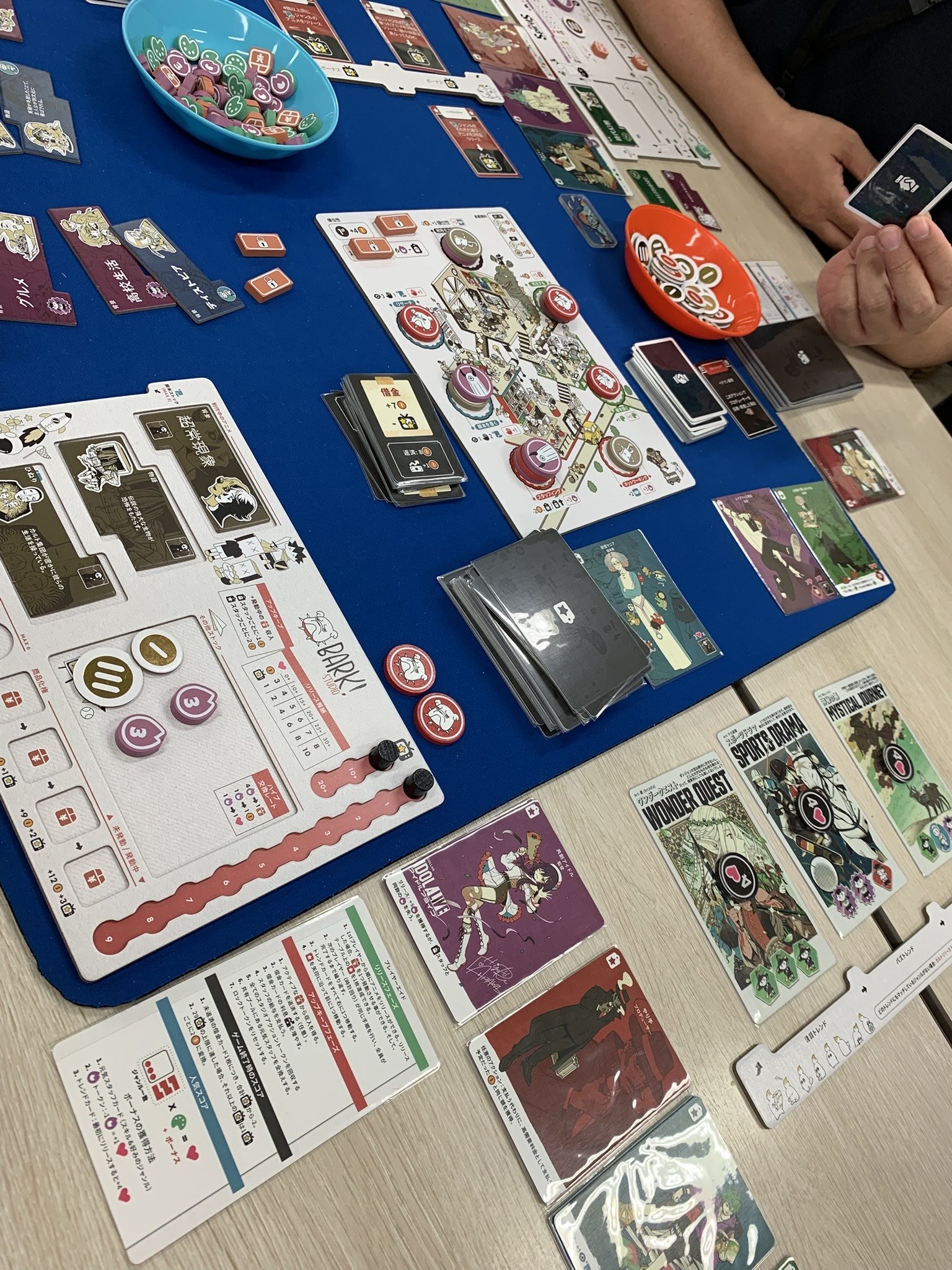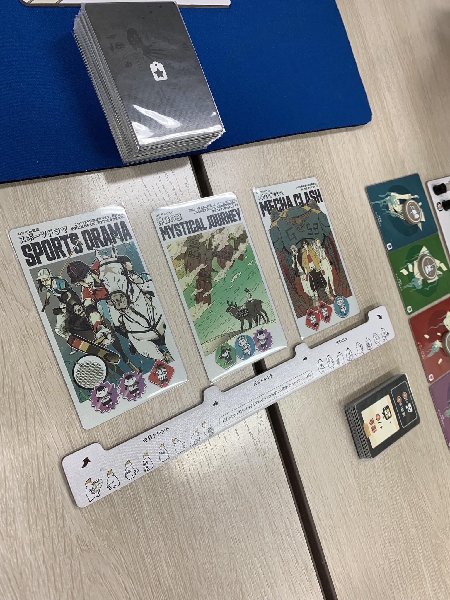 お次はアニメ制作スタジオでアニメを作るテーマのゲームを遊びました。ワーカープレイスメントでアニメ制作に必要な人材とシナリオなどのリソースを集めてアニメに仕上げる過程がノレますね。楽しい~! 勝者はみっきーさん、お見事でした。