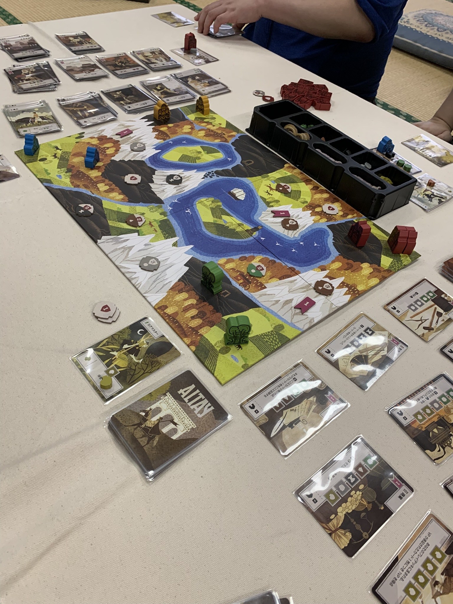 デッキ構築に地勢マルチっぽい感じを絡めたゲーム。この組み合わせは面白いに決まってます。アルタイより少し重めの「トルトゥーガ2199」を思い出しました。「トルトゥーガ2199」が遊びたくなりましたがおいそれとは遊べないのでアルタイ買っても良いかな。カードが日本語化済というのはデッキ構築ゲームでは大幅なアドバンテージですよね。