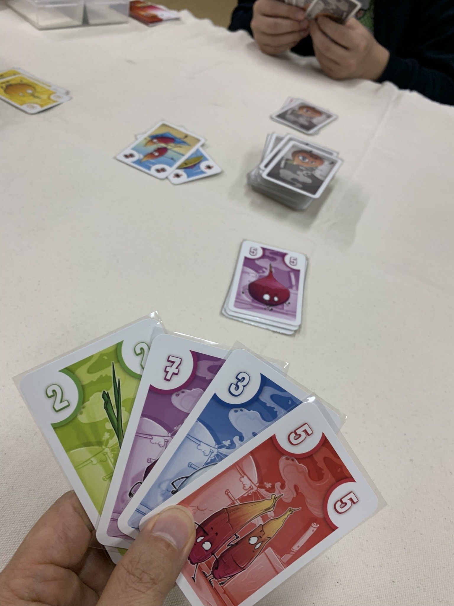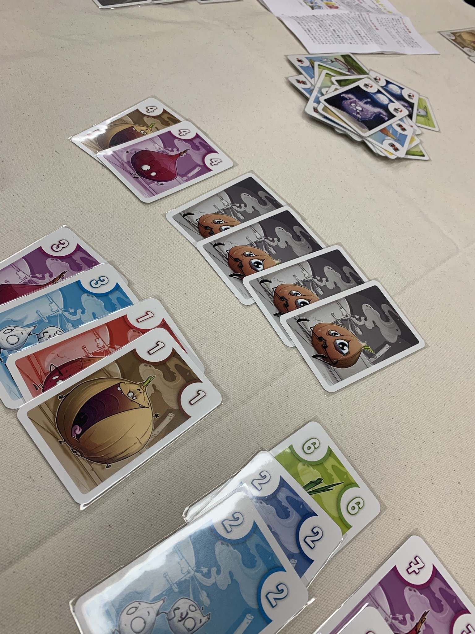 本日最後は少し前に荏原町将棋センターでも遊ばせていただいた簡単なカードゲームを遊びました。コンポーネントにティッシュが入っているのが洒落が効いてて好きです。ちょっと欲しいなぁ。