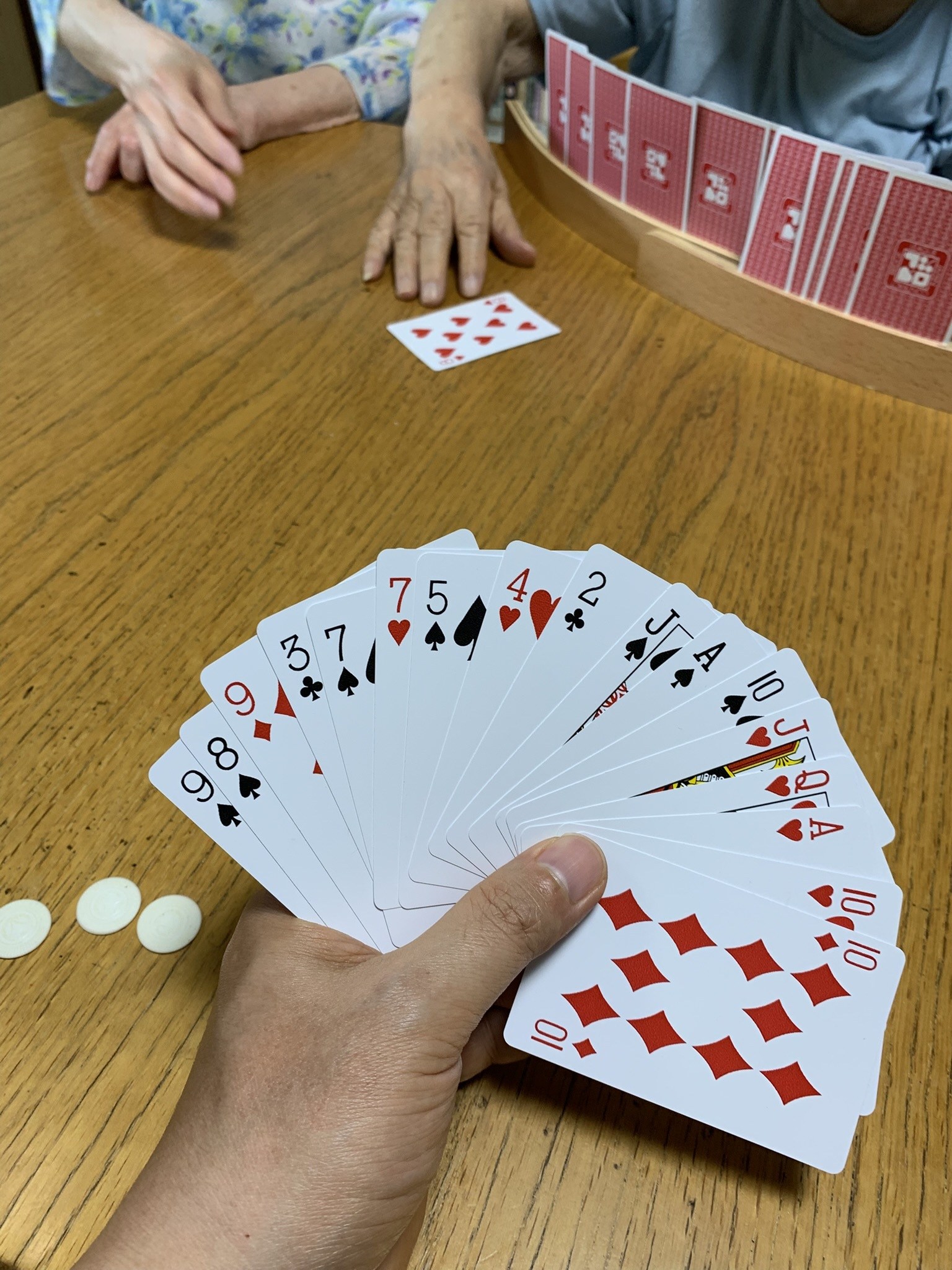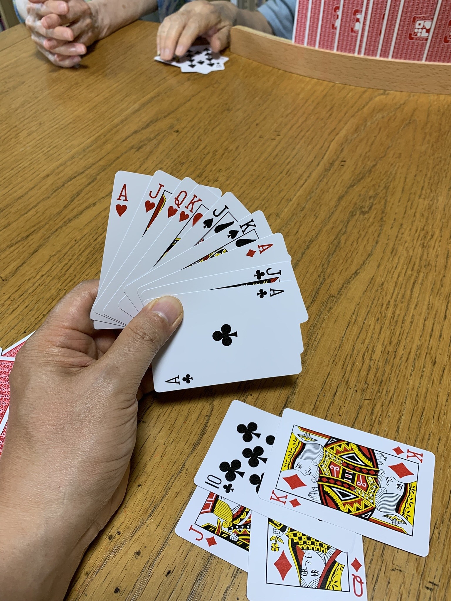 今日一番の発見! トランプで遊ぶトリックテイク、なんと「ハーツ」の祖先なんだとか。多人数で遊ぶとより楽しい失点を避けるゲームです。トランプ(切り札)がトリックの途中でいきなり決まるところがとてもユニークですね。「カナスタ」のように専用デッキ作っていただきたいなぁ、無理だよなぁ(笑)