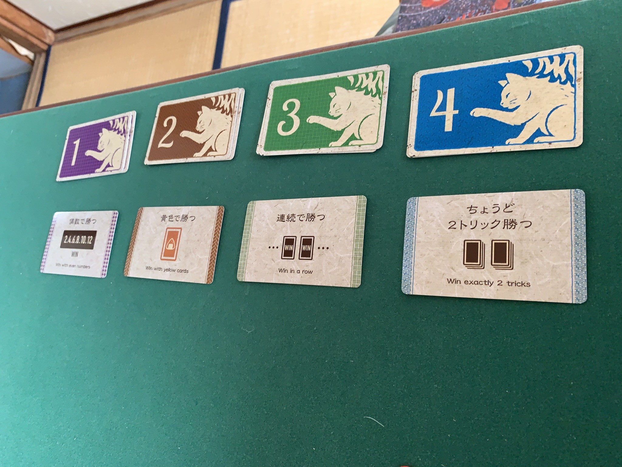 有名な方の新作トリックテイクなのでルールなどはポータルサイトを見ていただくとして。全プレイヤー共通で見えているお題を選んでビッドして達成を目指します。今度は4人で遊んでみたいです。