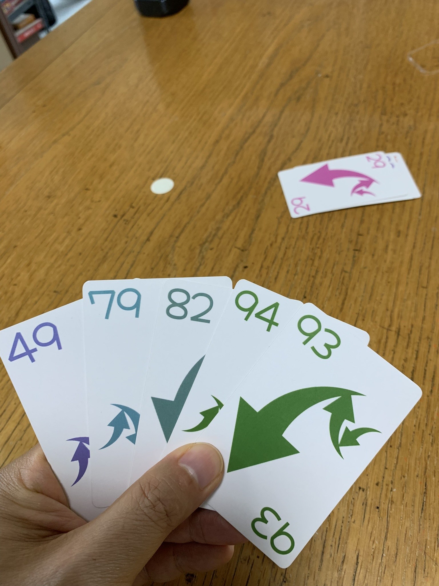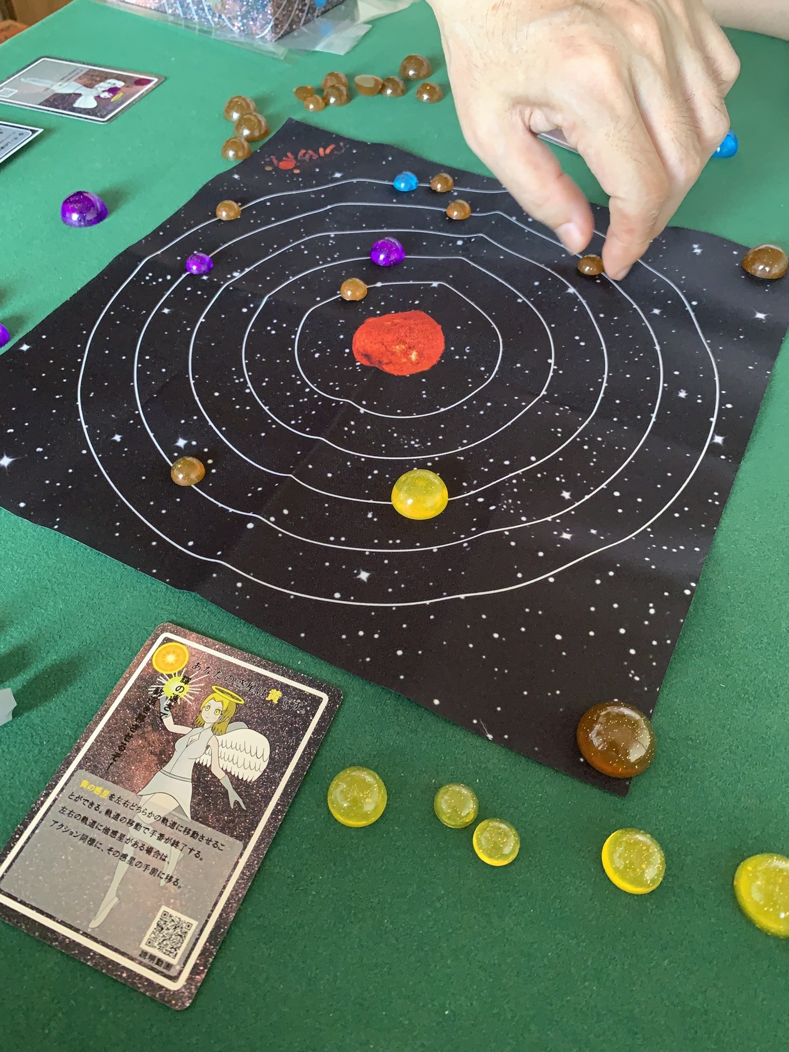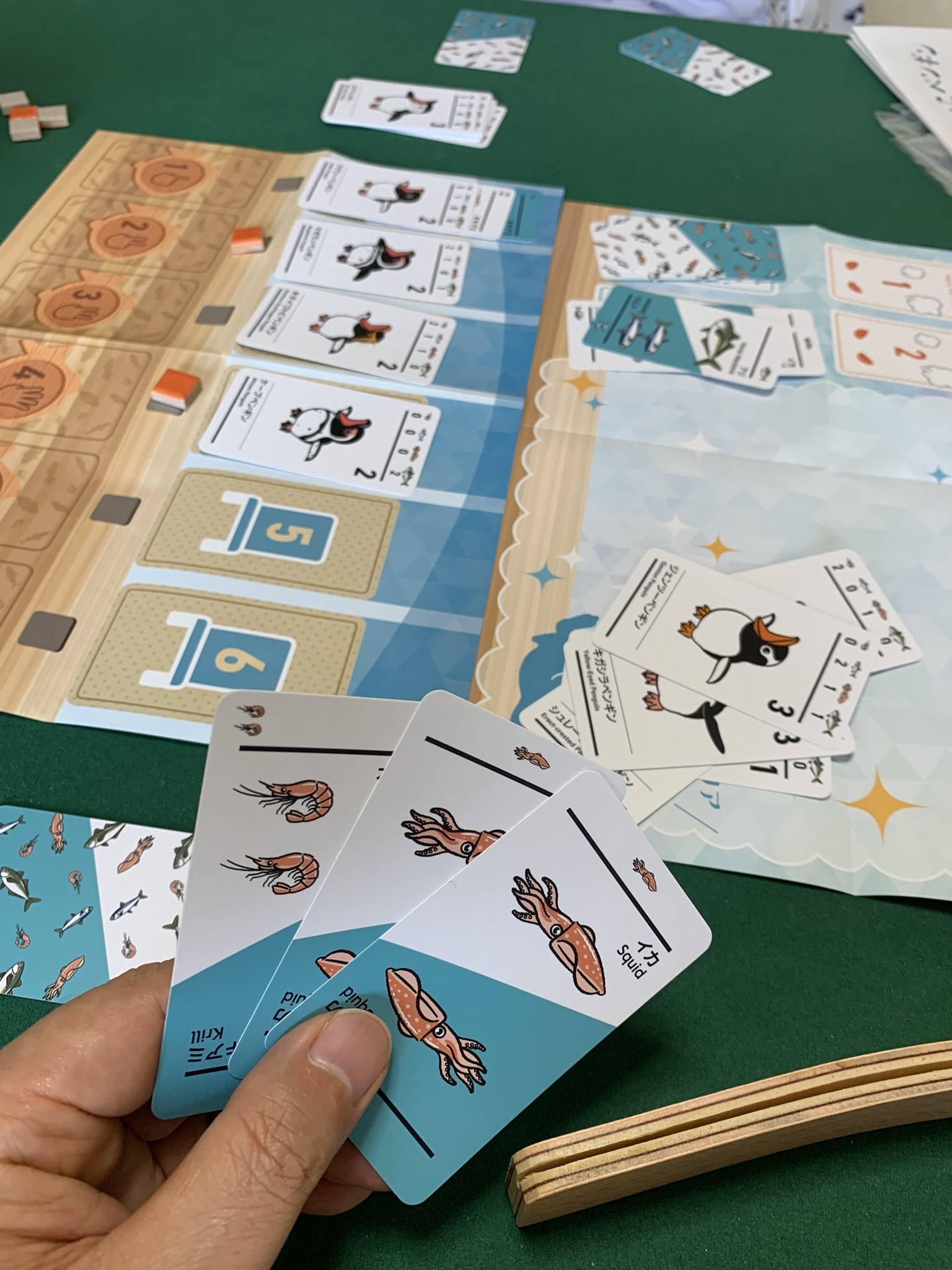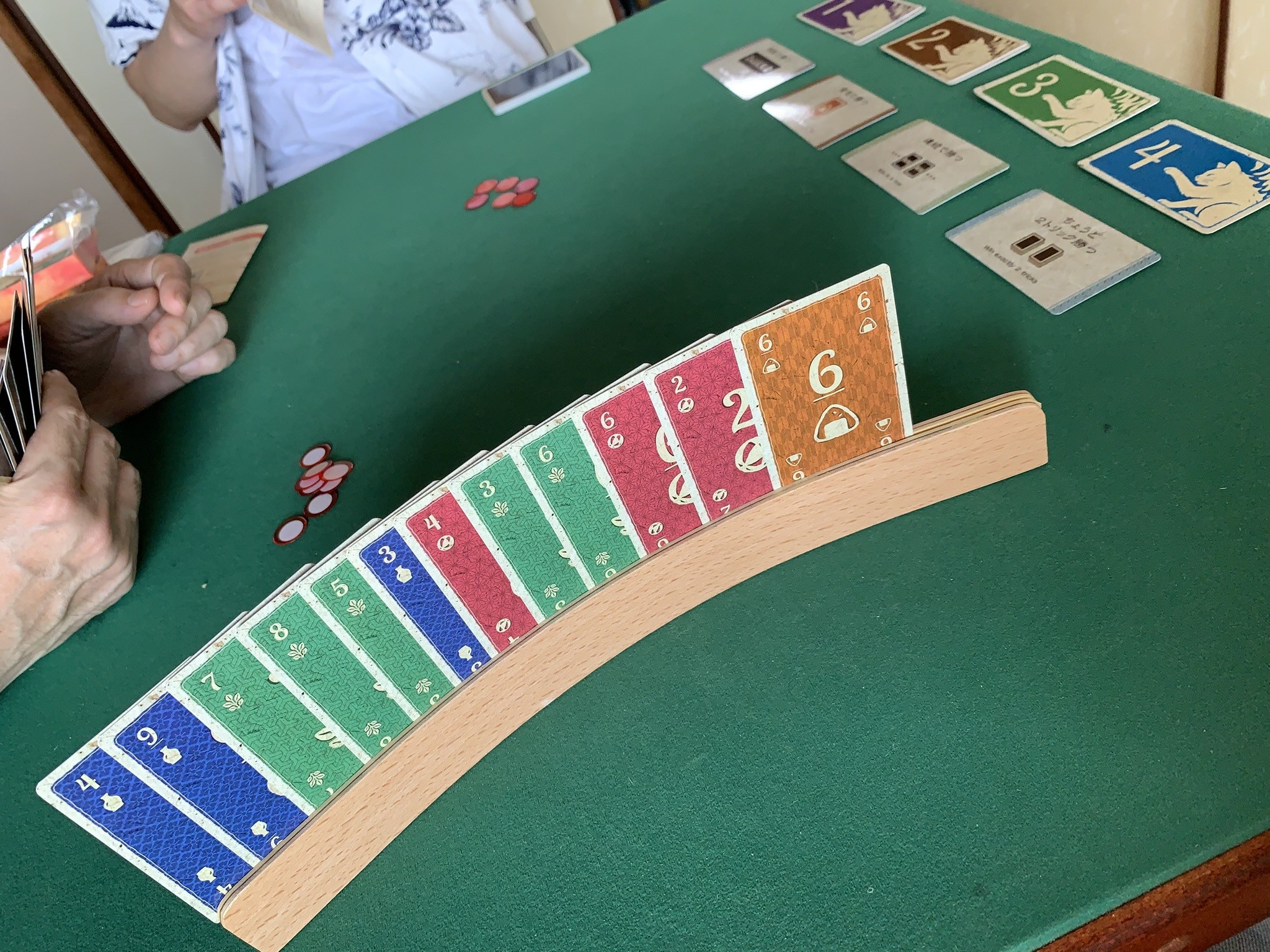 エリアマジョリティゲーム。カードを置いて数値勝負するのですが置こうとする場所への若干の縛りが必ず生じるようなシステムで毎手番悩ましいです。勝者はまつながさん、お見事でした。