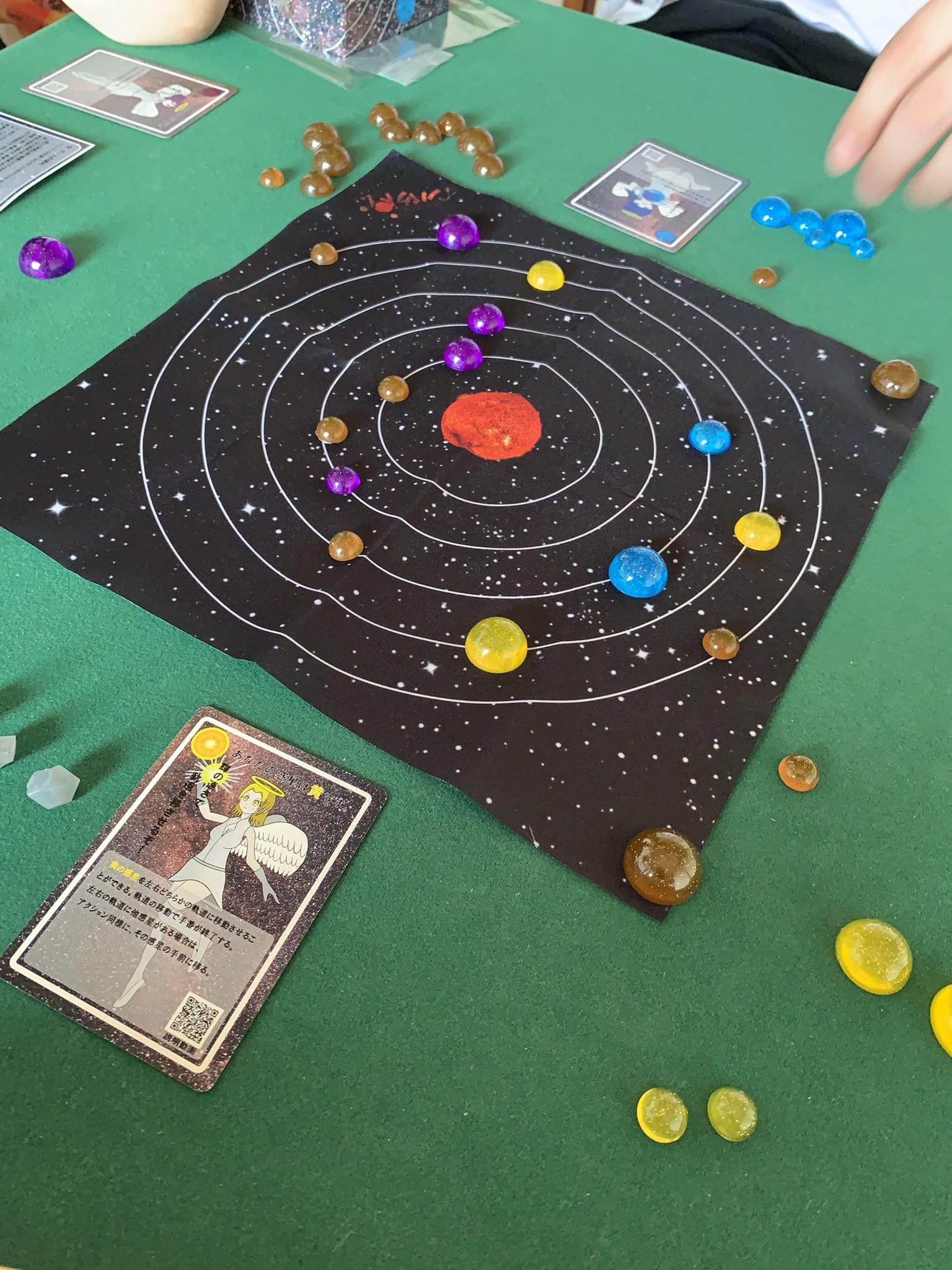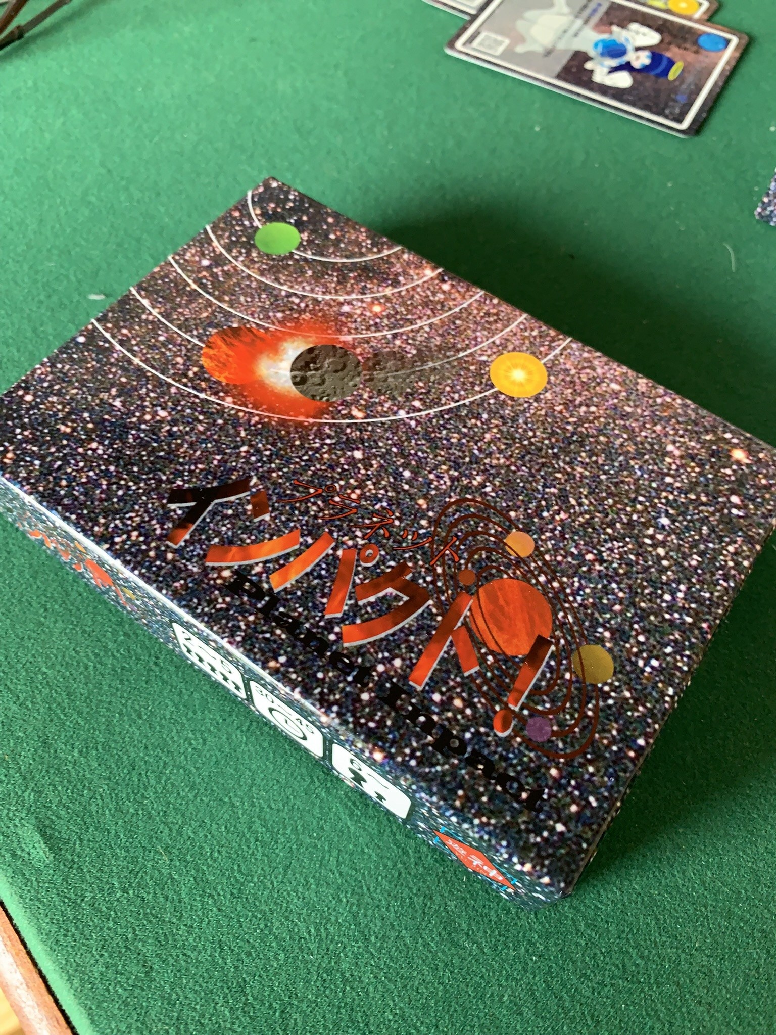 パッケージのインパクトが凄い!(笑) 多人数アブストラクトの趣きです。小さい惑星同士をぶつけてより大きい星にしていこうというゲーム。各プレイヤー独自の特殊能力もあってガチガチ感を緩めています。