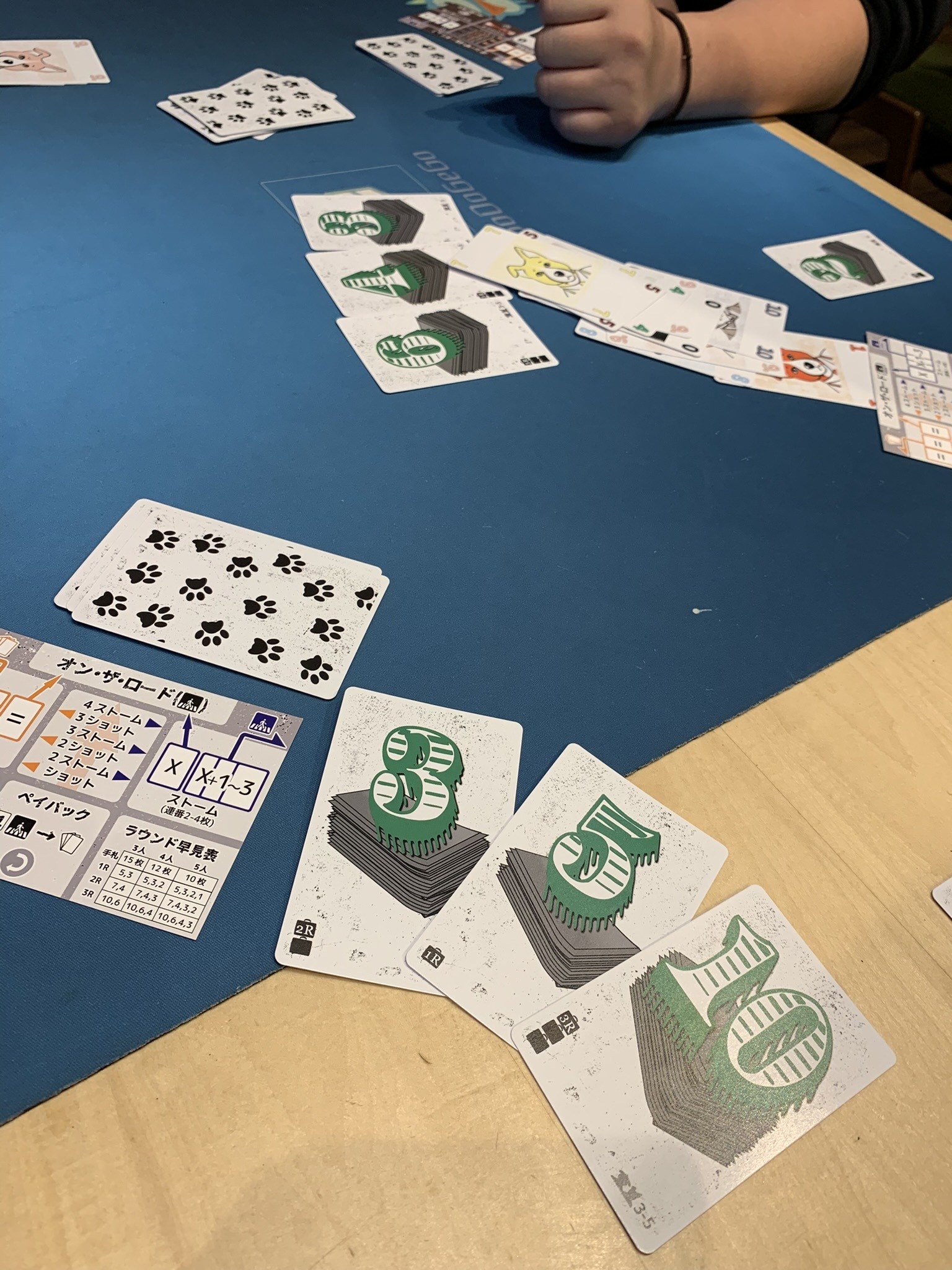 お次もゲームマーケット2025春の新作からこちらも大富豪フォロワーです。手札を出した結果、次の手番のプレイヤーはもちろん、逆手番側のプレイヤーにも攻撃することができるのがユニークポイント、面白い! どことなく「アブルクセン」を思い出しました。
