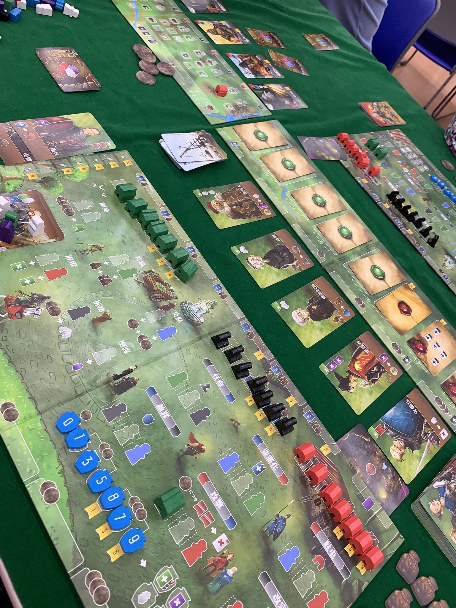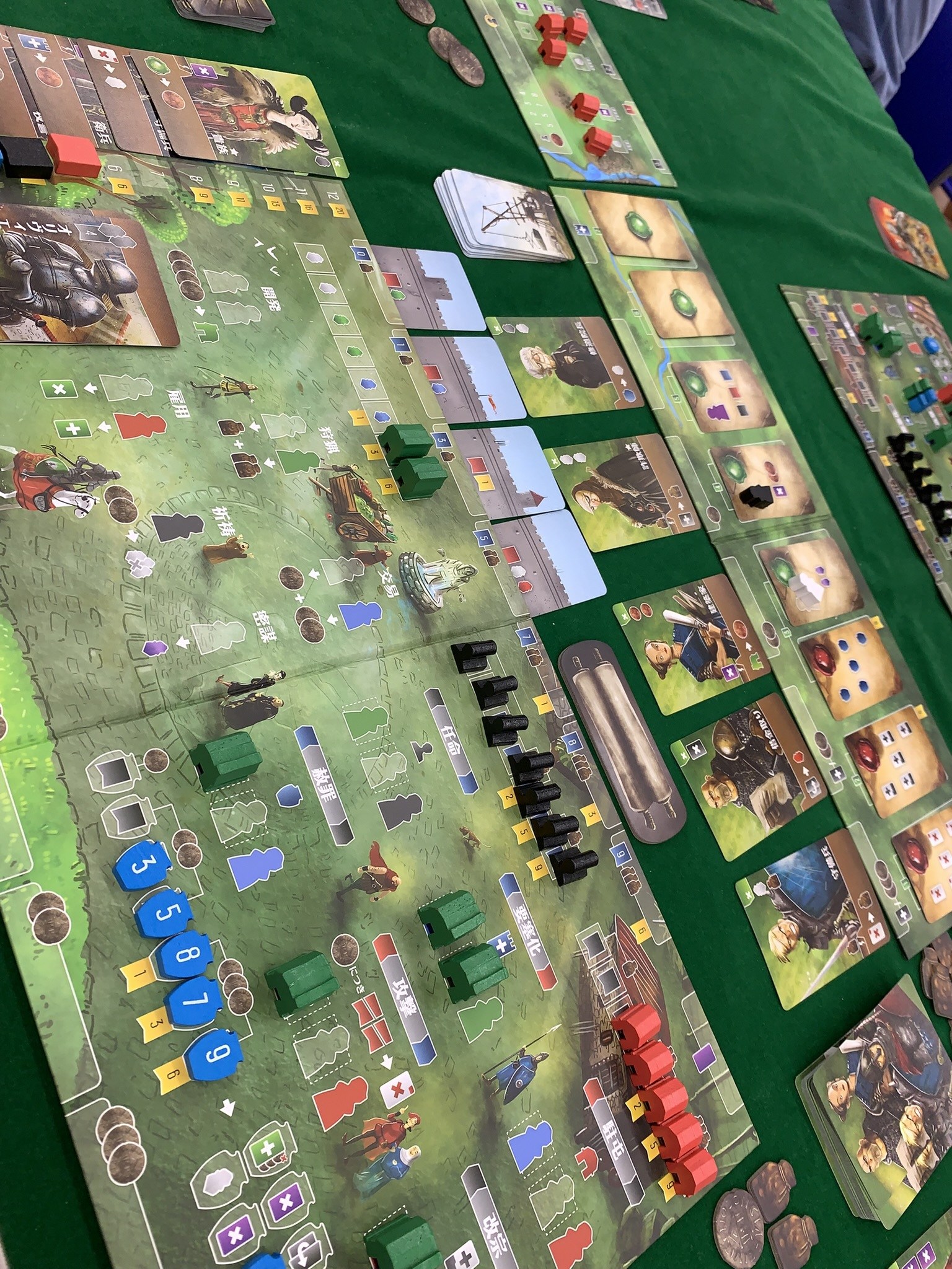 本日最後は自分の持ち込みのゲーム。西フランク3部作の中でたぶん一番 Weight が重いと思います。ガッツリ遊んだ気持ちになれるのでとても好みです。拡張もモロヘイヤさんに遊ばせていただいて面白かったので日本語版を購入したは良いけどまだ自分のコンポーネントで拡張入りでは遊べていません。その前に基本セットの布教をすることで精いっぱいなのですよねぇ。勝者はウエタさん、お見事でした。