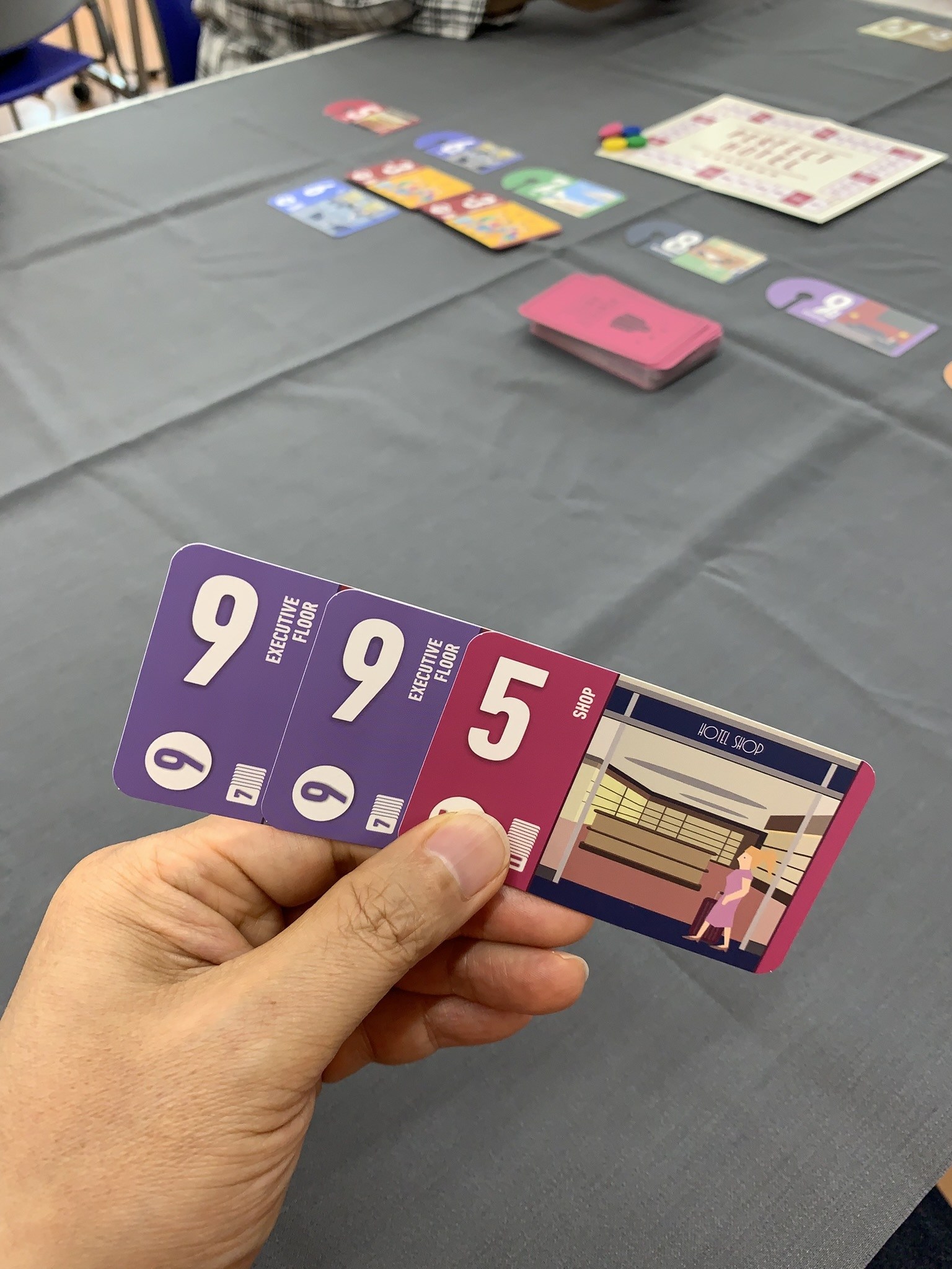 カードリソースを上手くやりくりしてホテルの建築をするマジョリティ争いゲーム。同じホテルは各プレイヤー1度しか建築できないのでどこまでカード枚数を貯めるかのチキンレースとも言えますね。今回は紹介を兼ねてという感じで1ラウンドで終了となりました。