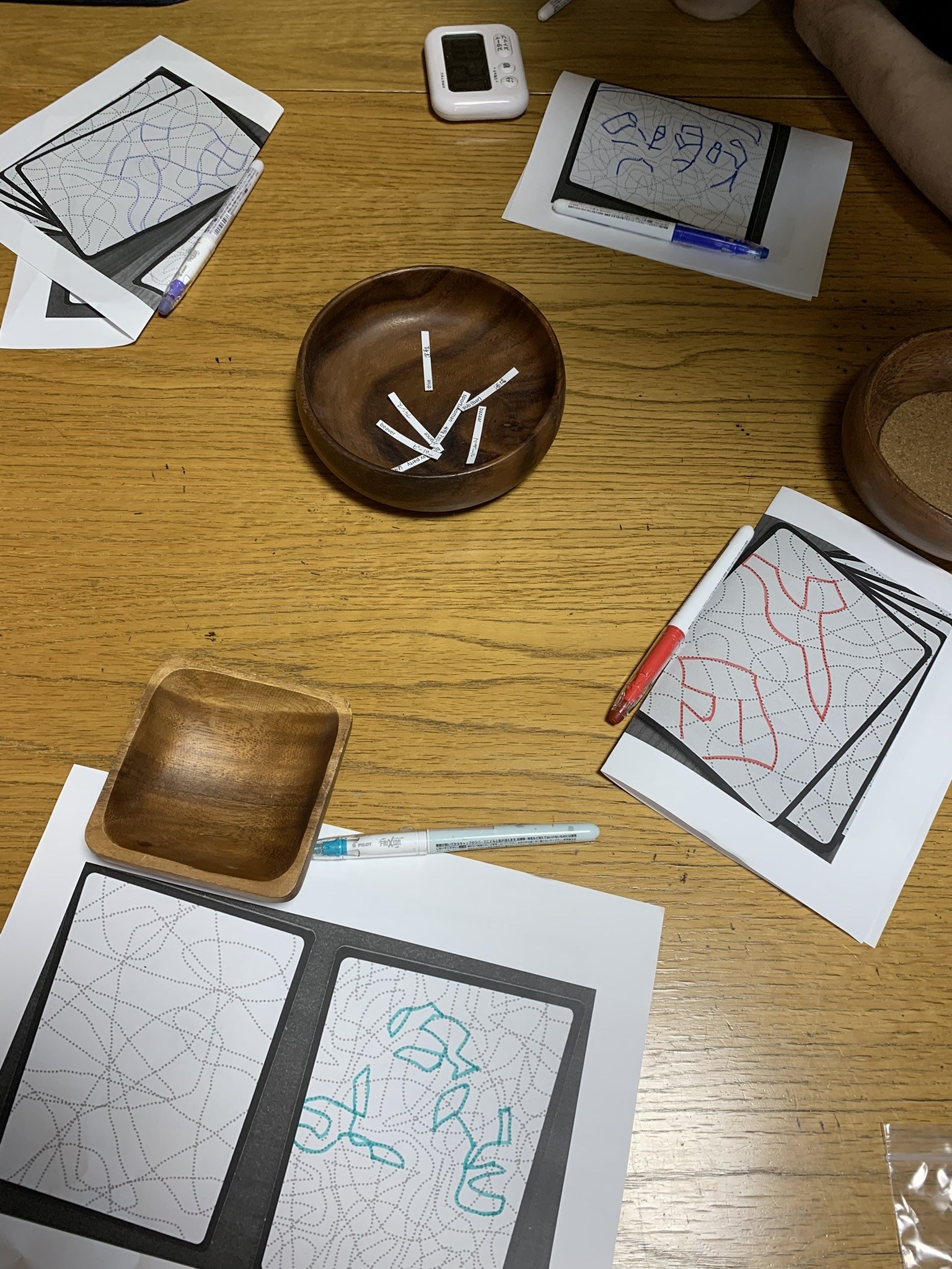 2025年ドイツ年間ゲーム大賞ノミネート作品というので持参してきたという協力お絵描きゲーム。あらかじめ線が引かれている部分にしか線を書けないので絵心がなくても安心して遊べますね(笑)