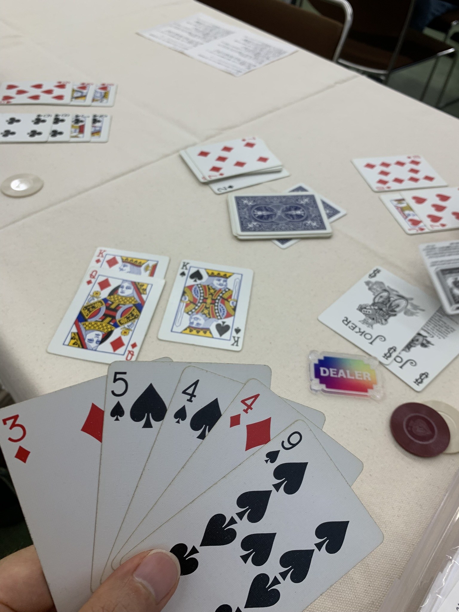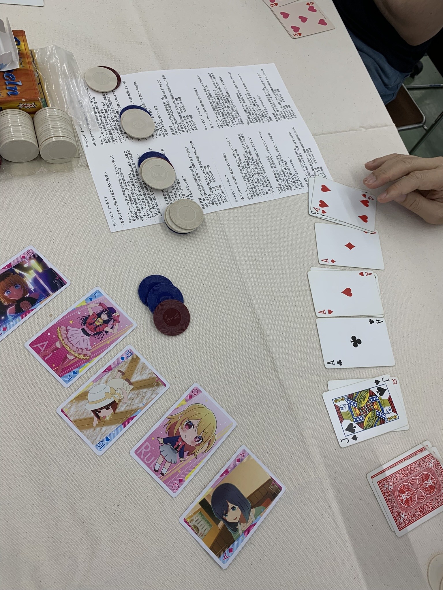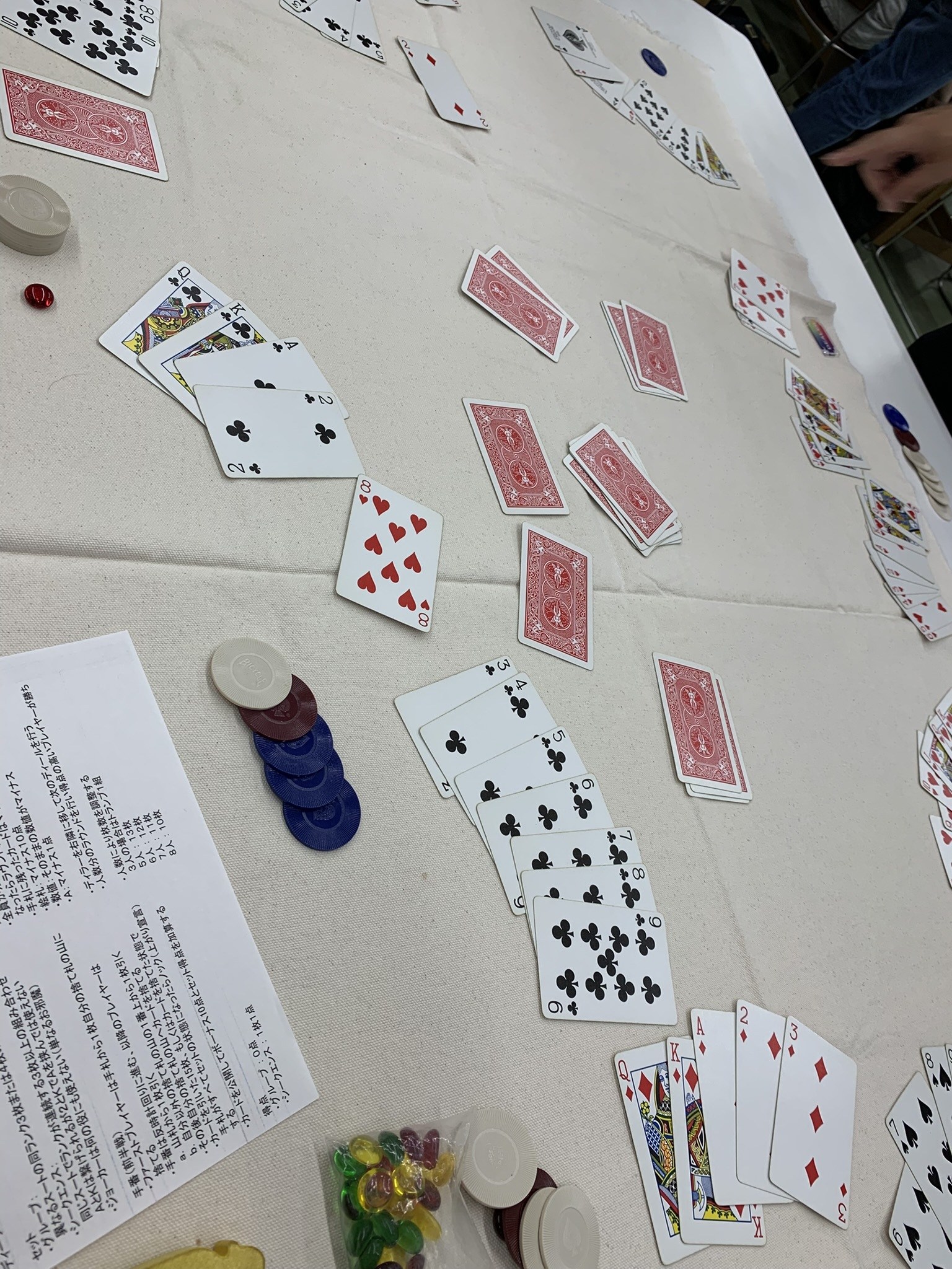 んー、どうも最近遊んだゲームを遊びたくなってしまうみたいですね。一人1デッキ持って遊ぶトランプゲームです。勝者は積み人さん、お見事でした。