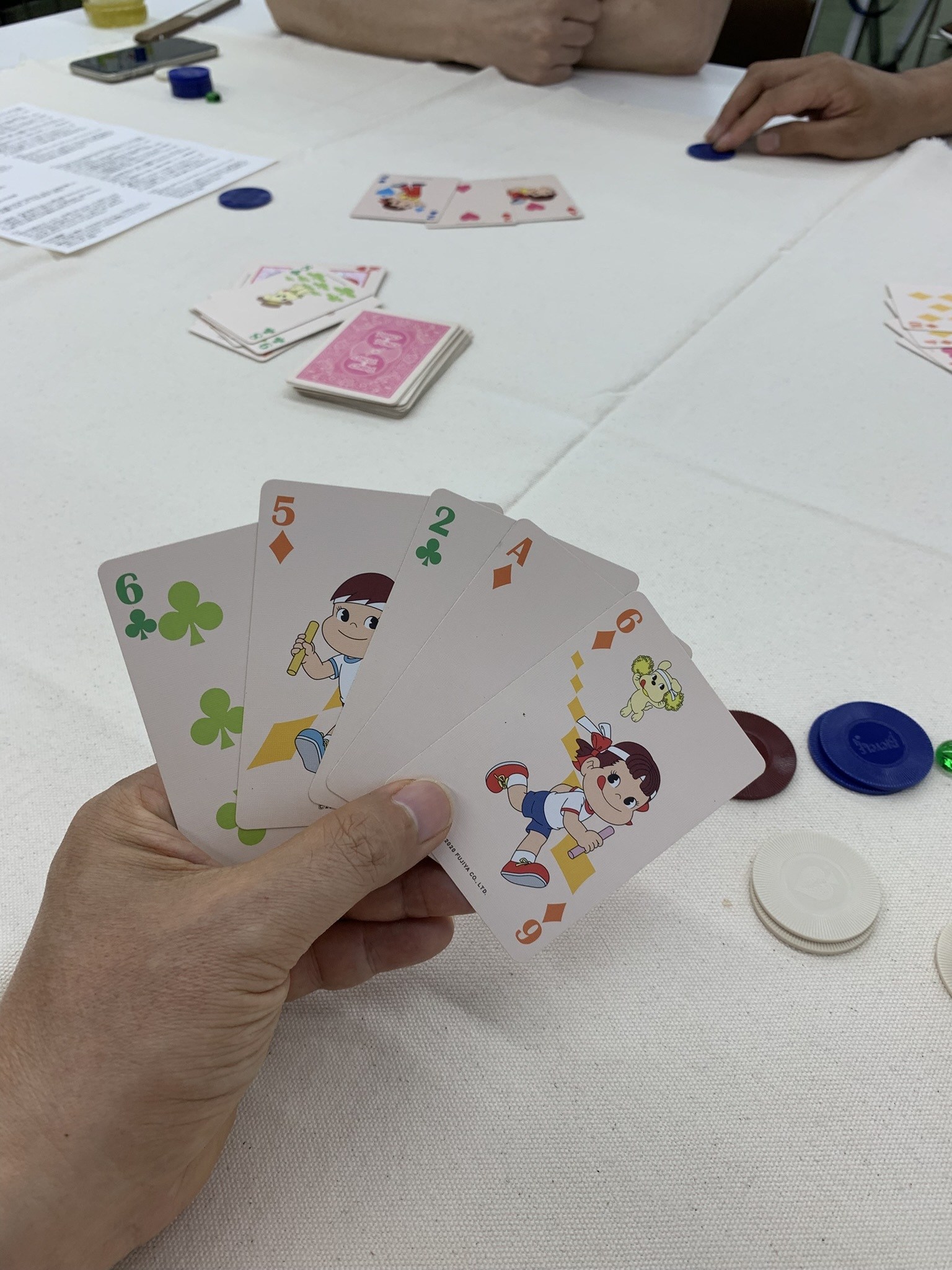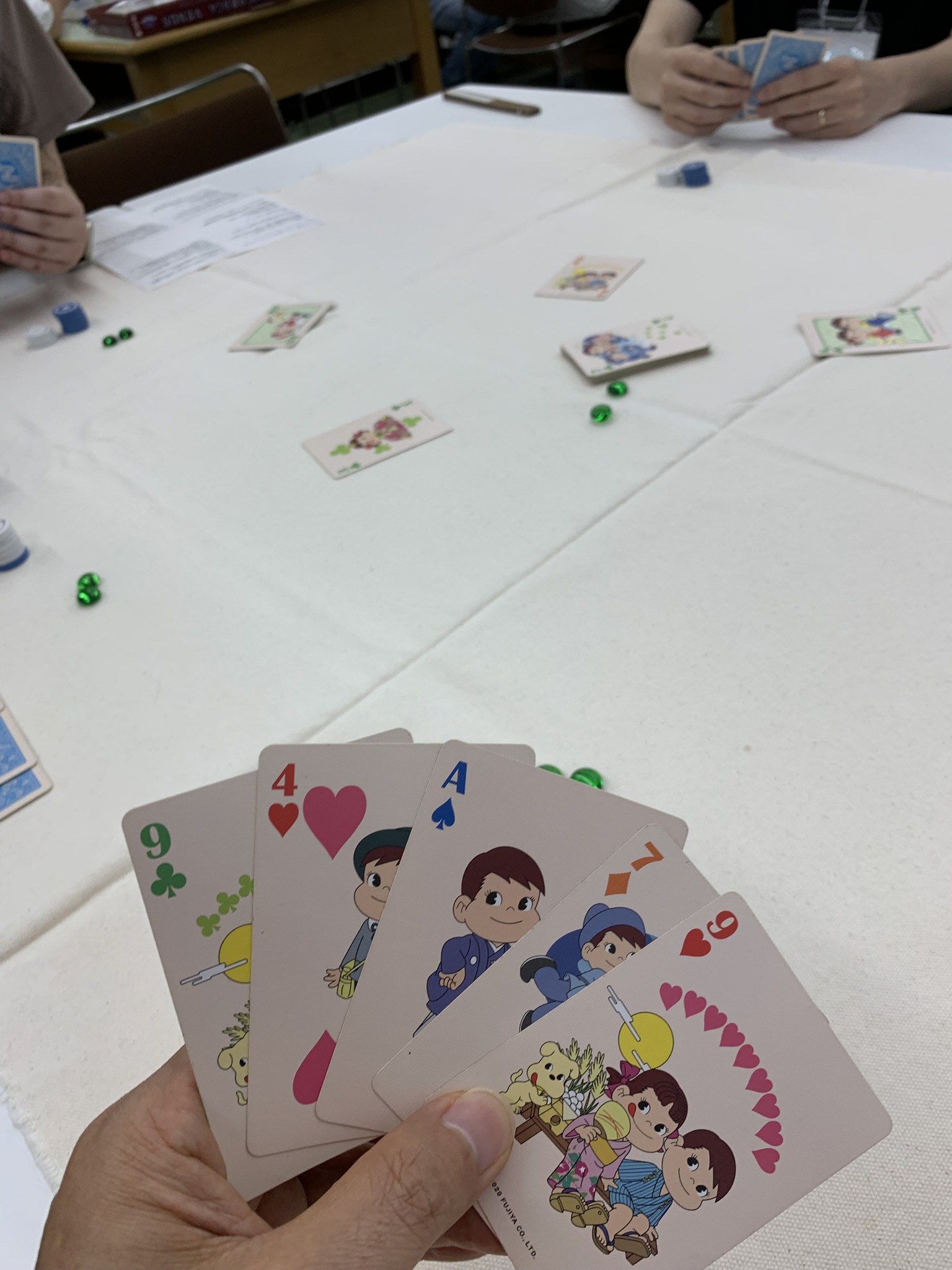 まずは軽くトランプゲームから遊びました。勝者はかもさん、お見事でした。