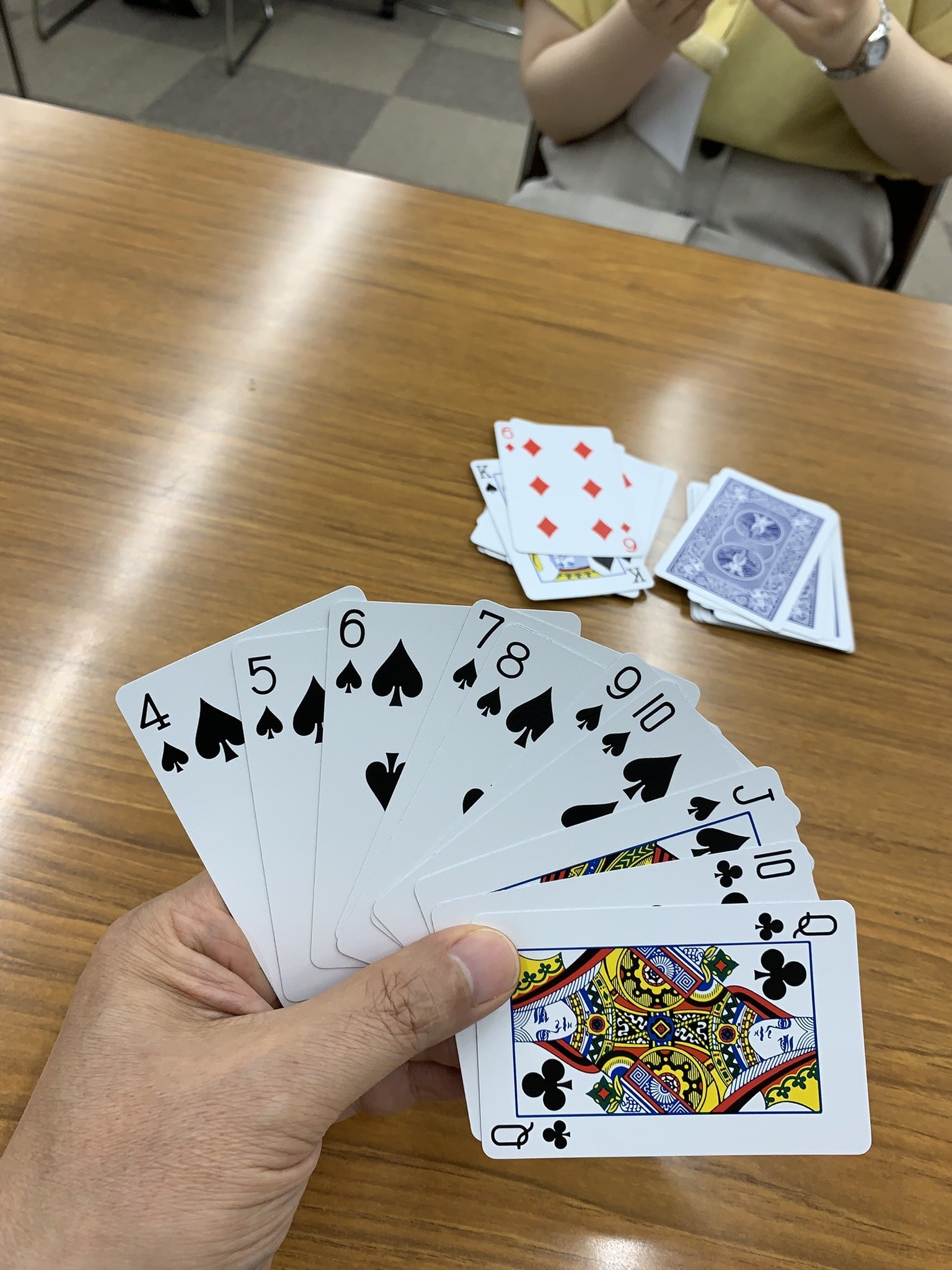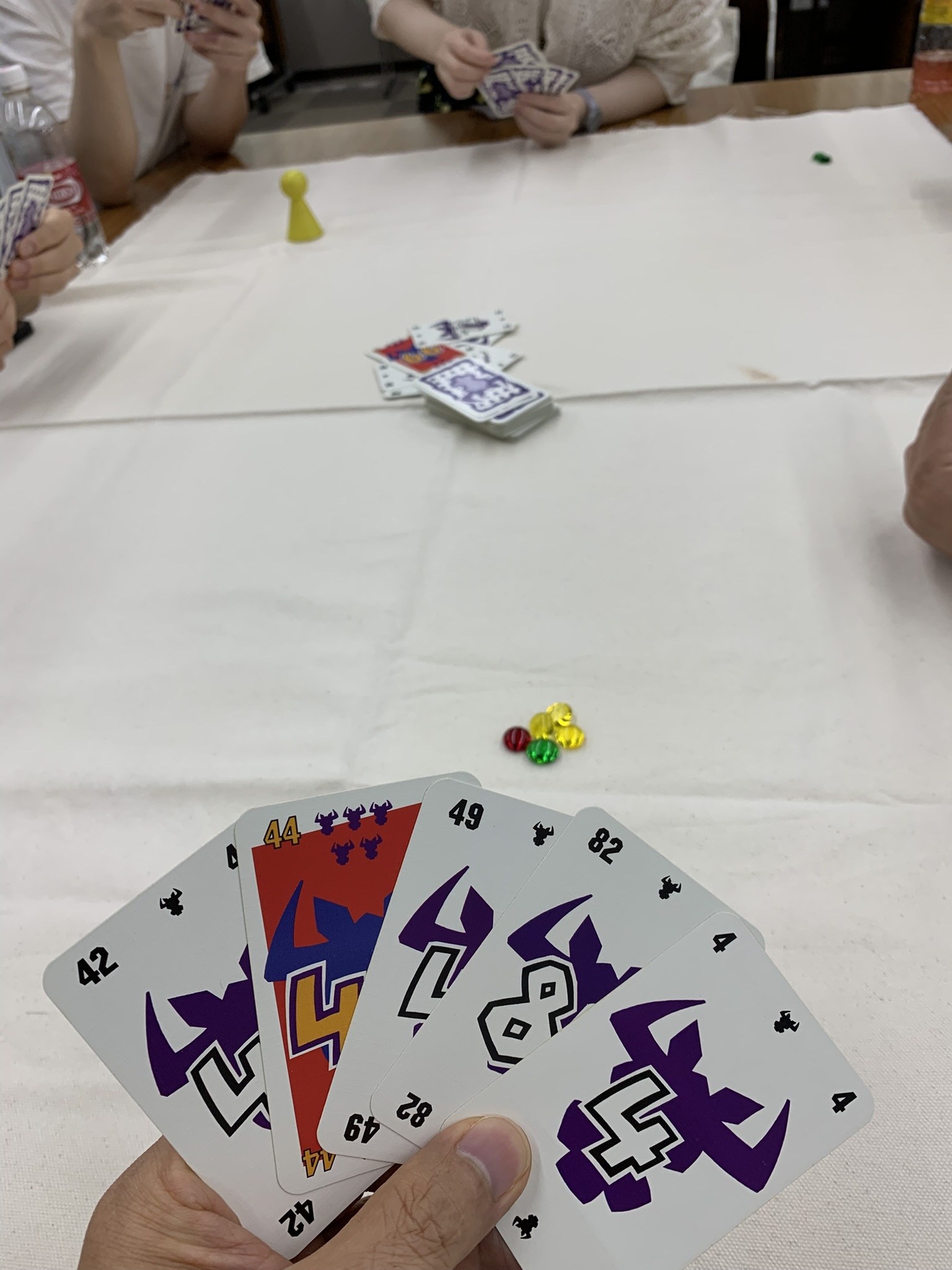 こちらもトランプで遊ぶゲーム。Reiner Knizia 先生の「ロストシティ」の元となったゲームと勝手に呼んでいます。勝者はうりんさん、お見事でした。