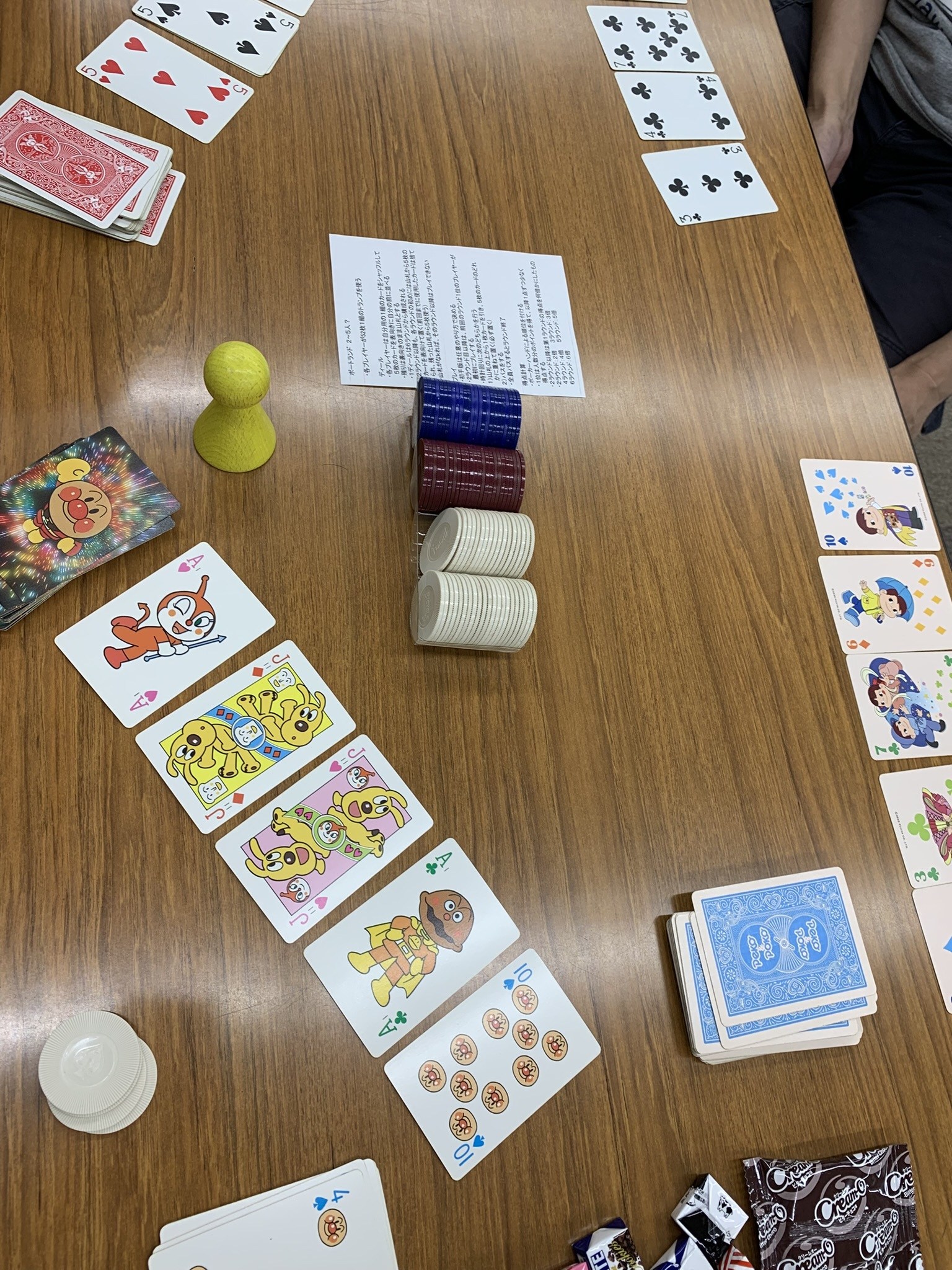 こちらも説明するタイミングで人が増えたか他の卓のゲームが終わるタイミングだったかで、カードを広げてそのまま片づけました。