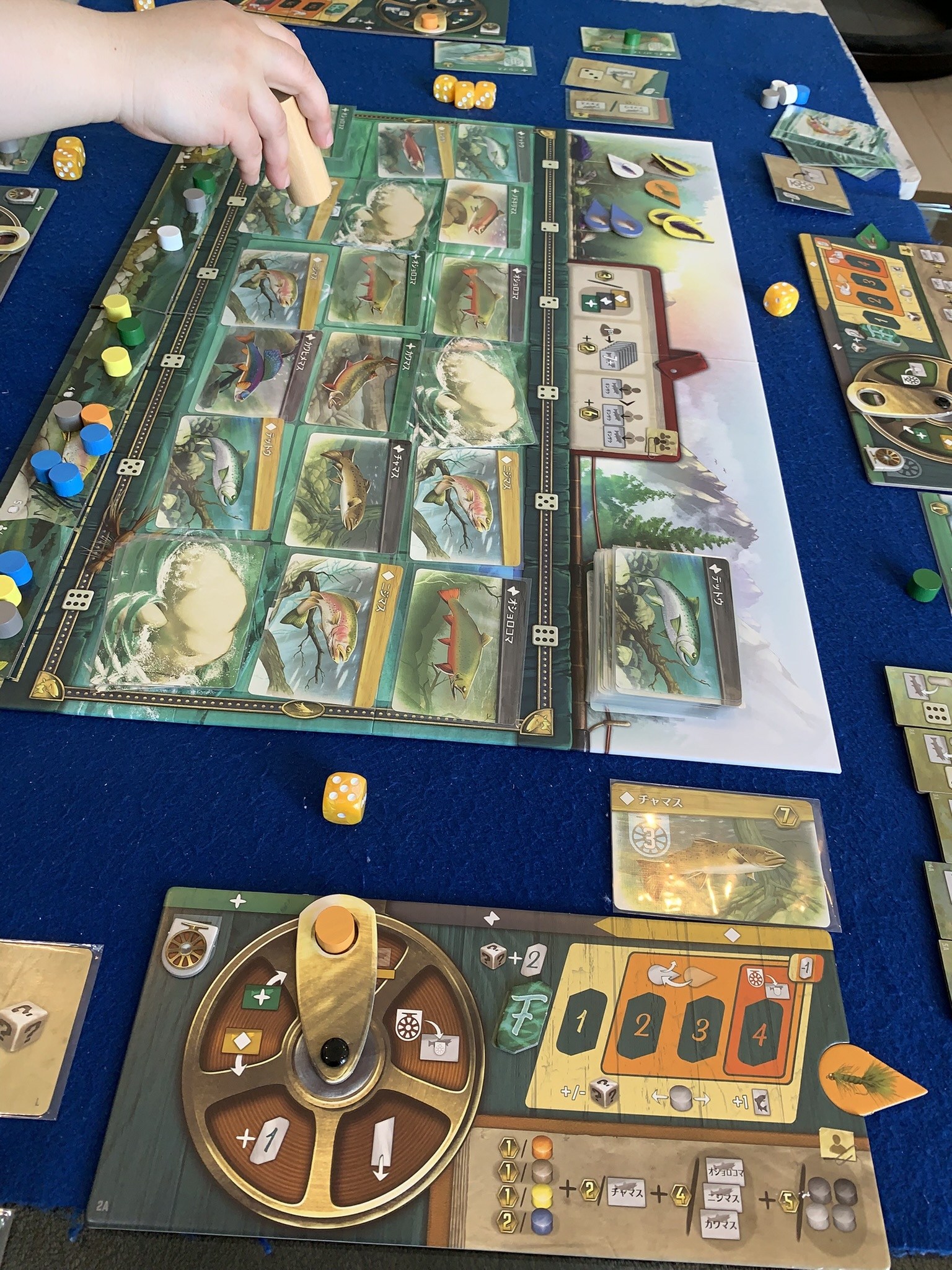 リールのギミックが楽しい渓流釣りがテーマのゲーム。勝者は先生、お見事でした。