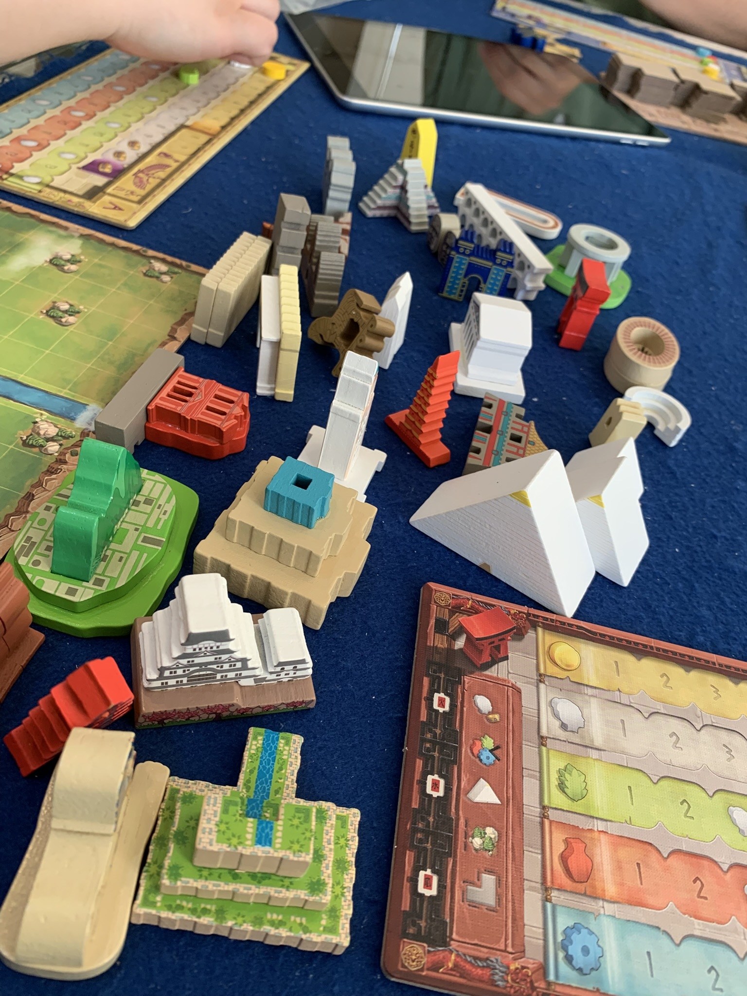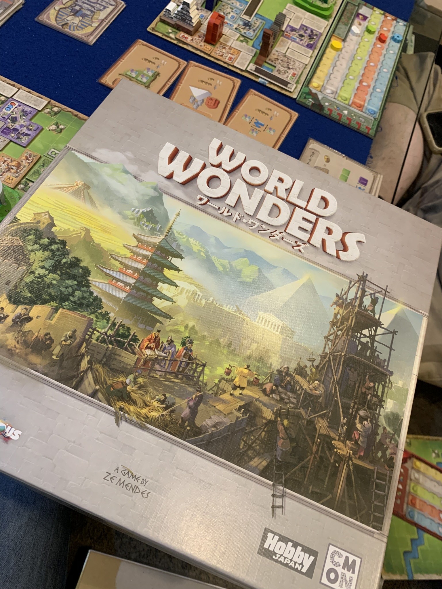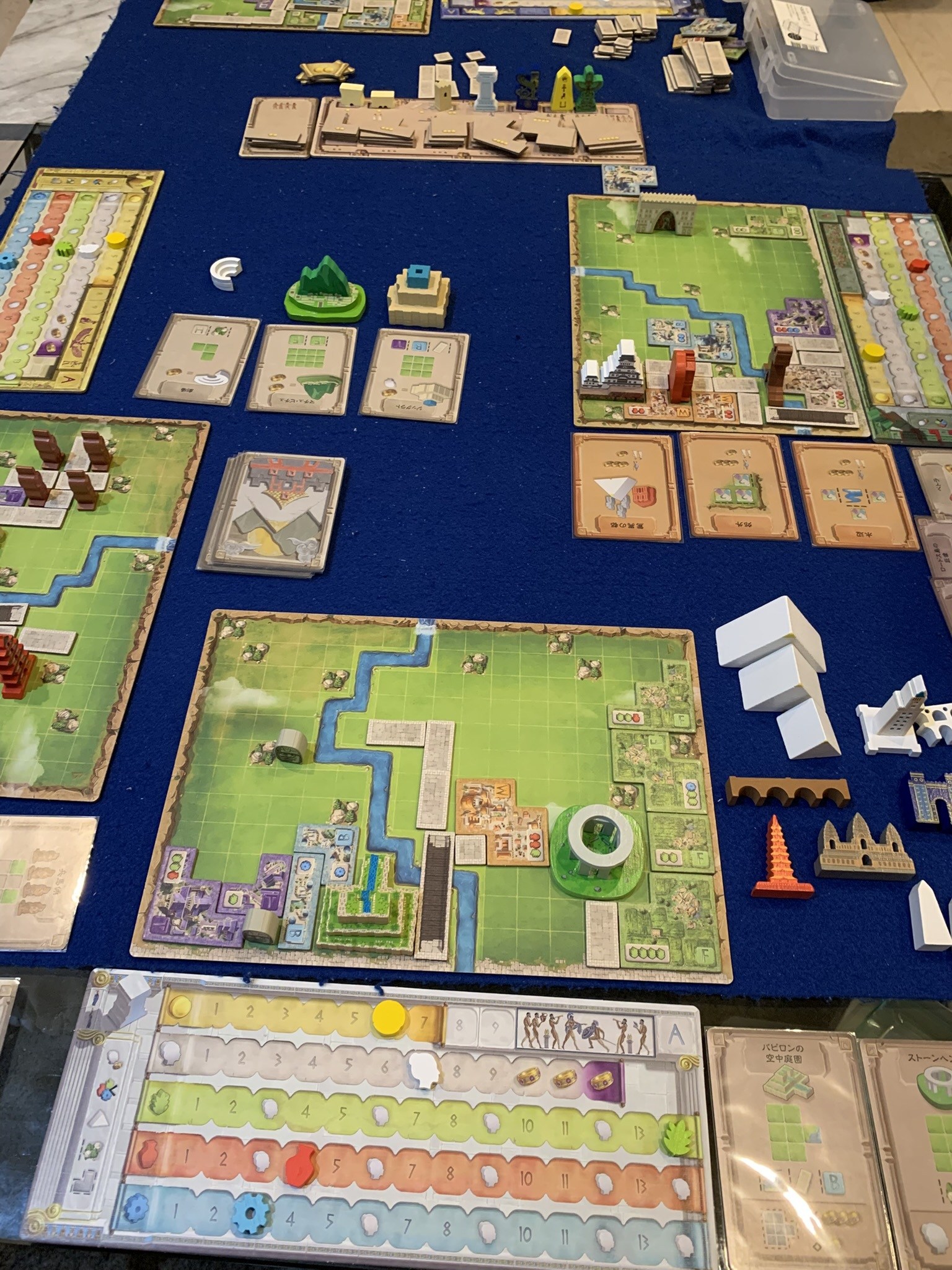 本日最後はタイル配置ゲーム(?)のワールド・ワンダーズを拡張入りで遊びました。世界中の不思議建物のミニチュアがテンションあがりますね。勝者はまたしてもさっちゃん、お見事でした。なんとここにも先生の素晴らしいレビューがありました。凄すぎ(笑)