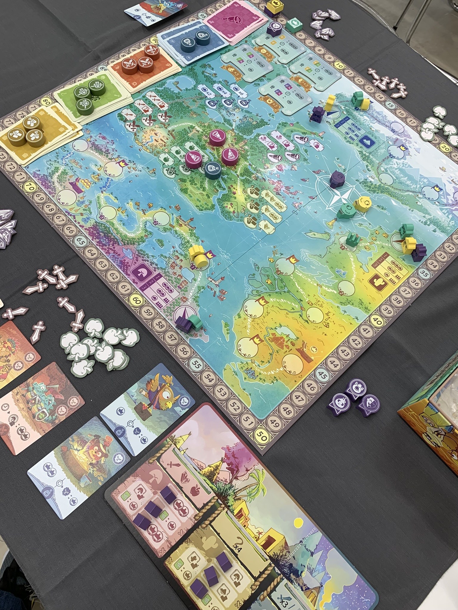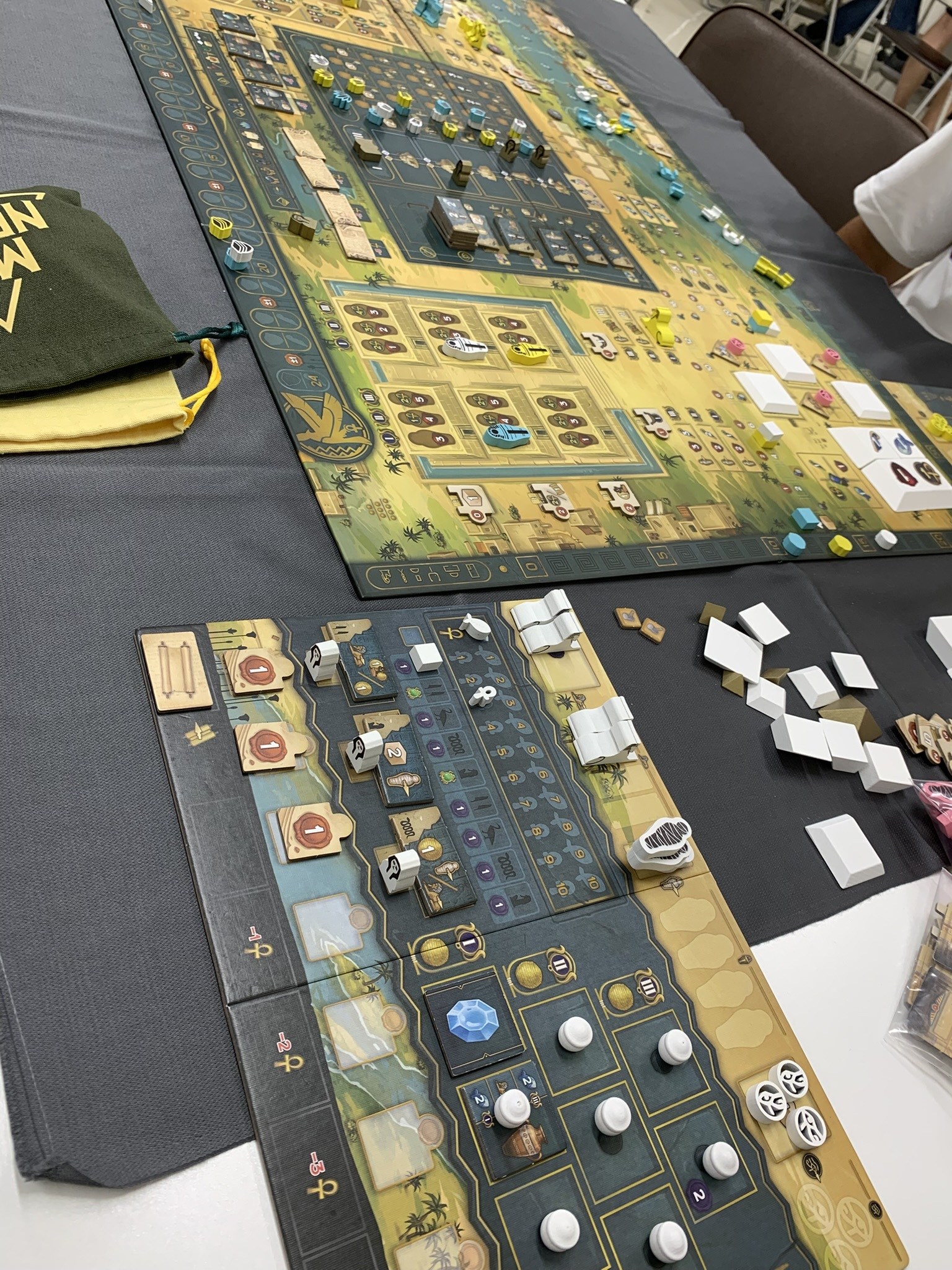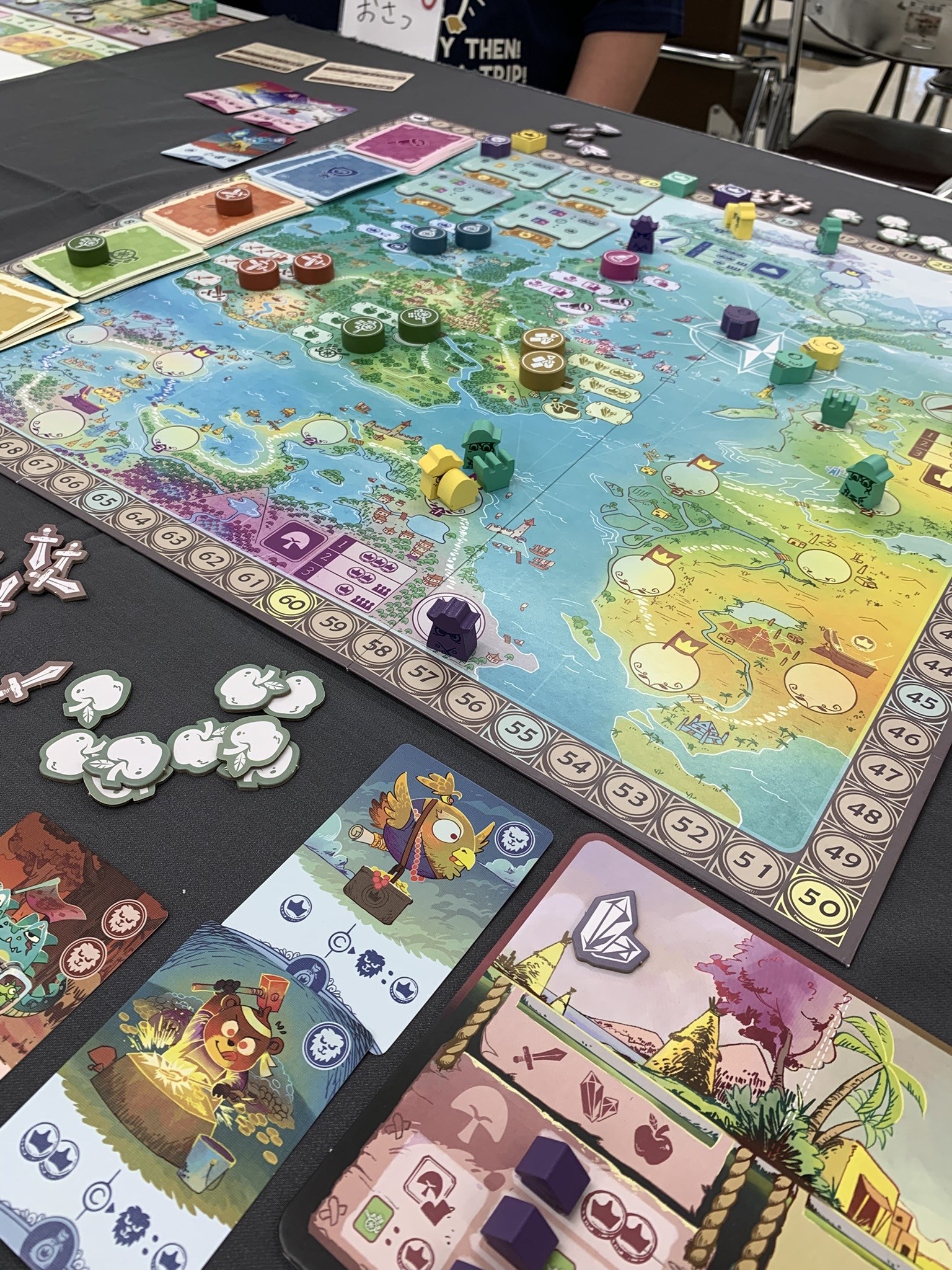 こちらは別卓で遊んでいたゲーム。ボードが立体的で興味がそそります。