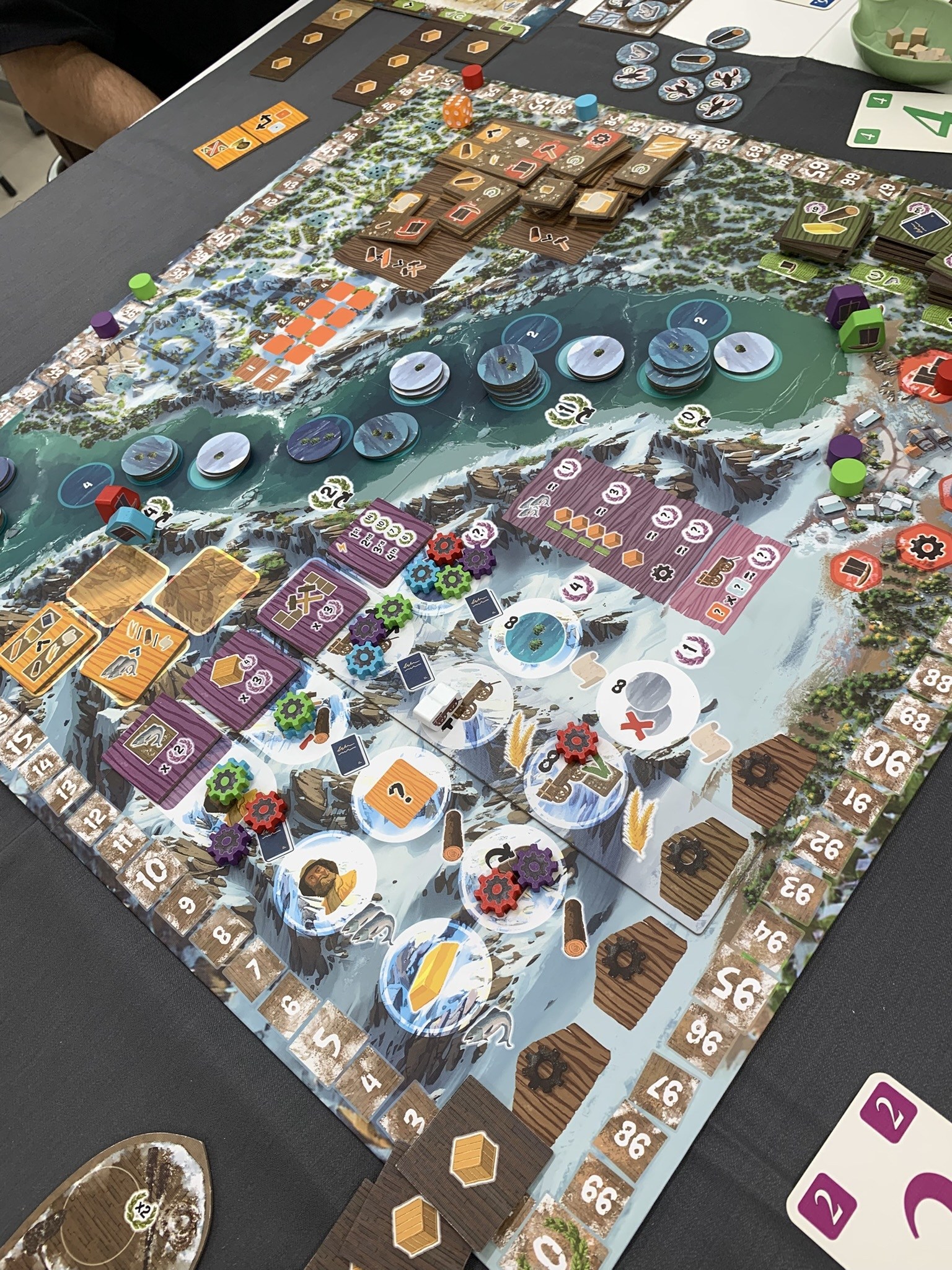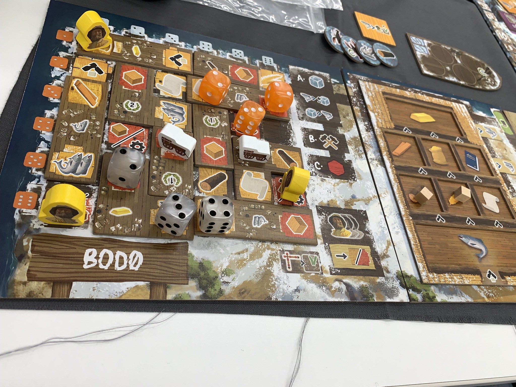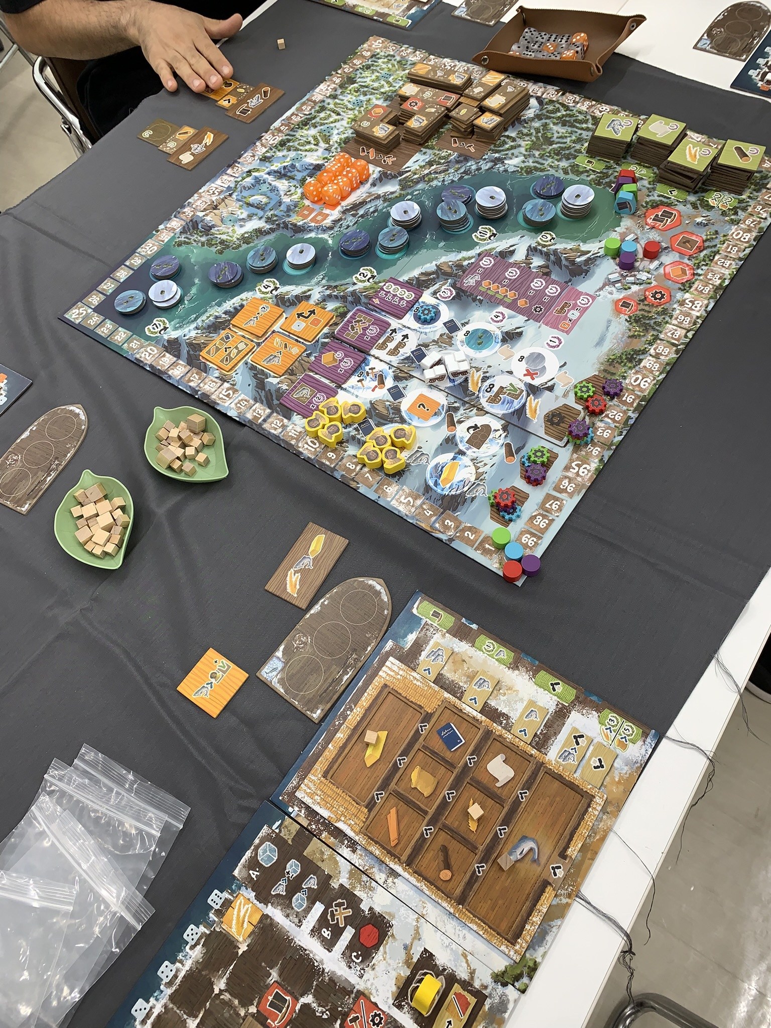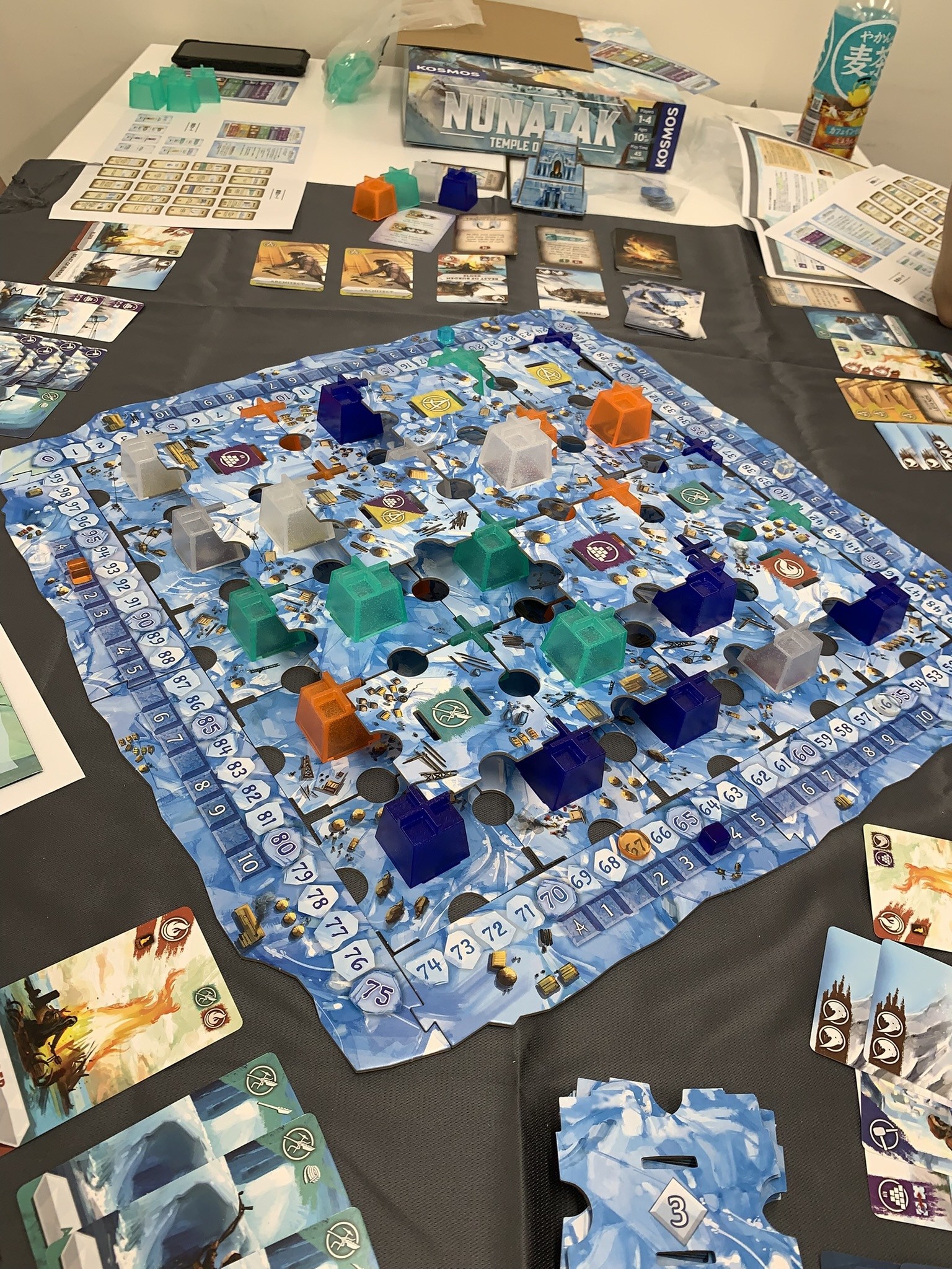 こちらは別卓で遊んでいたゲーム。ボードが立体的で興味がそそります。