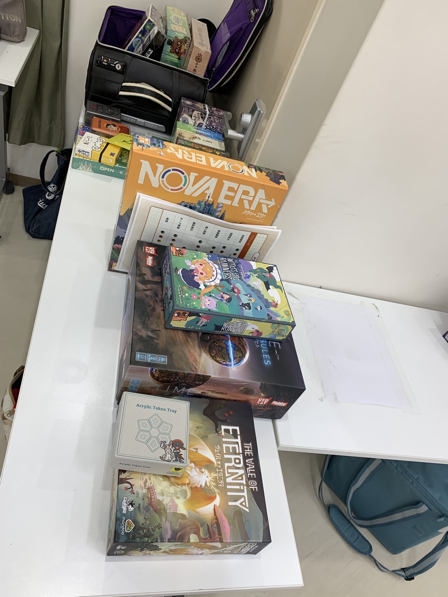ワーカープレイスと思いきや、袋からコマを引いてからの二段式カードドラフトが第一フェイズ、第二フェイズは第一フェイズで引かれたコマをピックアップしつつアクションする逆ワーカープレイスと言えそうな感じでゲームを進めていきます。BGG Weight は 2.26 なので自分の好みの重さからはだいぶお手軽に遊べるので出しどころの間口が広いかなと思います。勝者は poi さん、お見事でした。