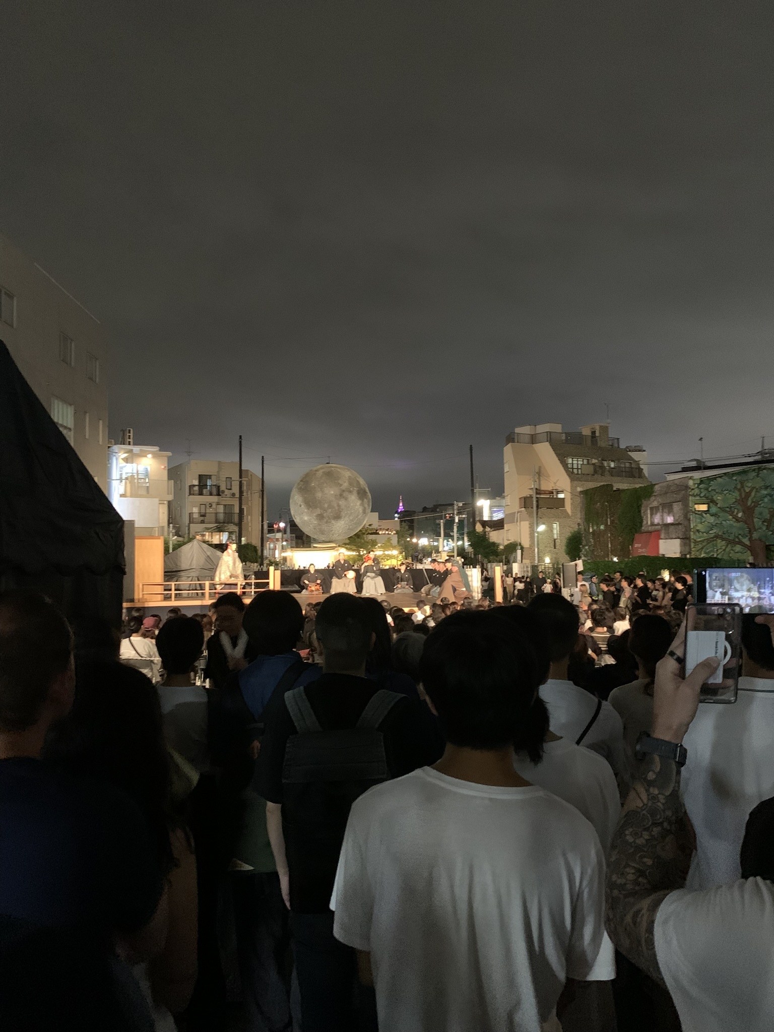 大きな月のバルーンはもう何度もみているので驚きはなくなってしまいました。能ではなく舞のみですが厳かな雰囲気が伝わってきます。