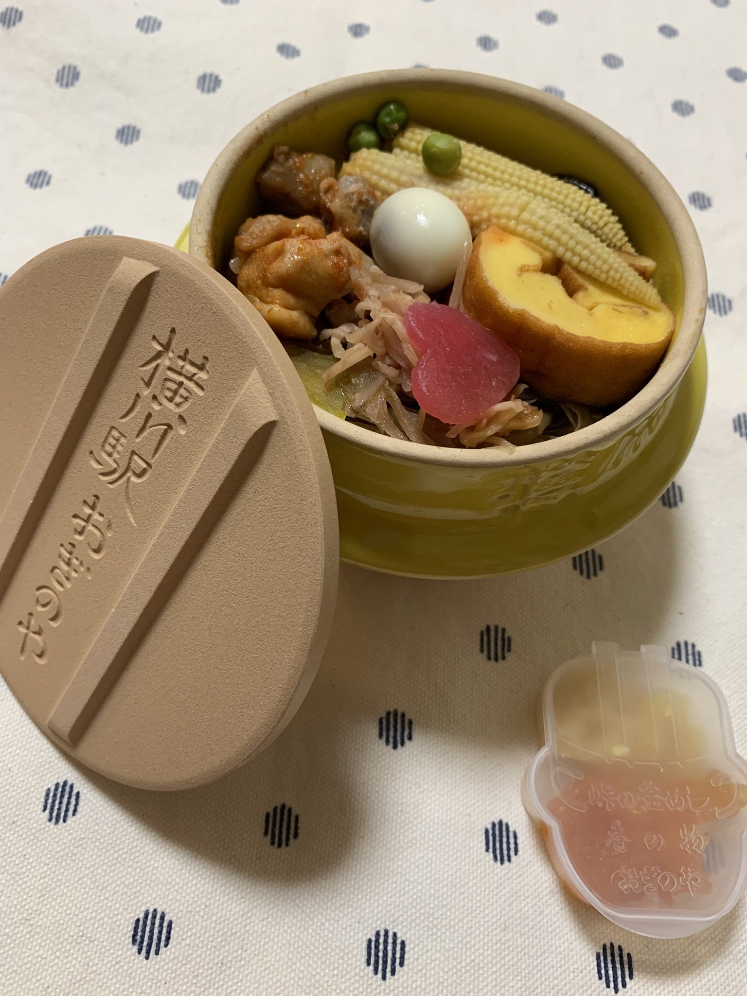 釜めしの掛け紙を別にしてプレゼントするのはさすがわかっていらっしゃるという感じです。特典の釜敷はランダムということでしたが2種揃いました。粋な計らいなのか本当にランダムなのかはわかりませんがランダムと言ったらほんとにランダムなのでこの辺は気が抜けません(笑)